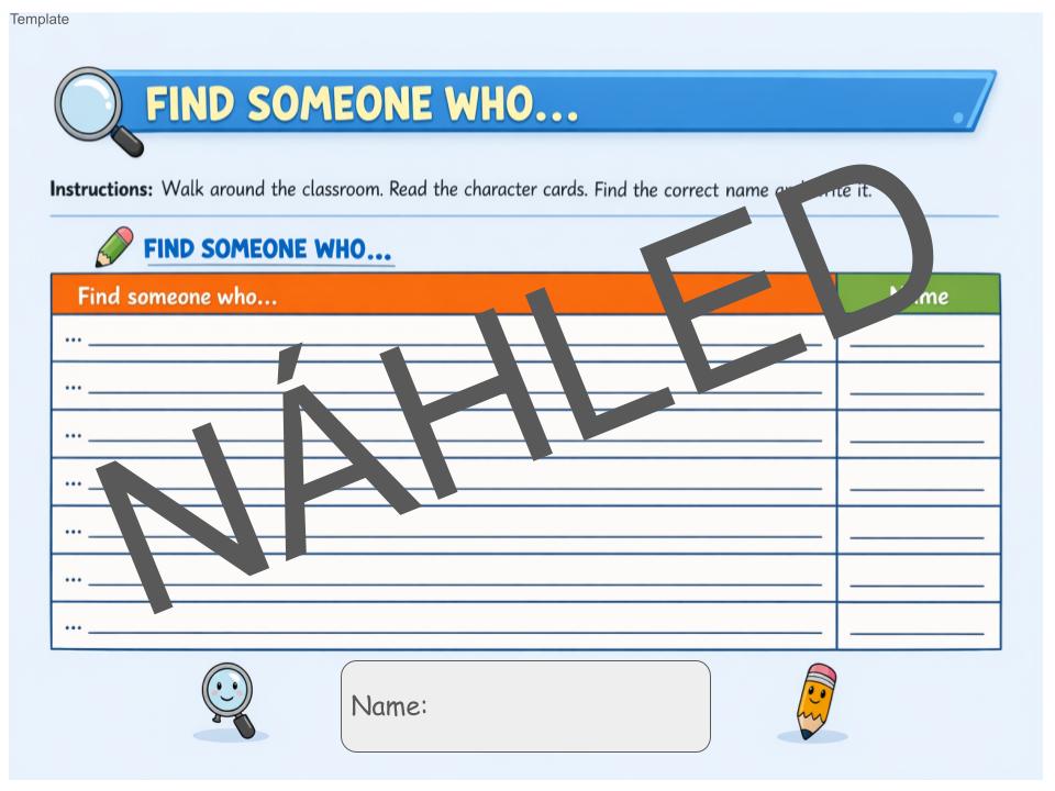 • Šablona na vytvoření vlastních otázek ke hře Find someone who…