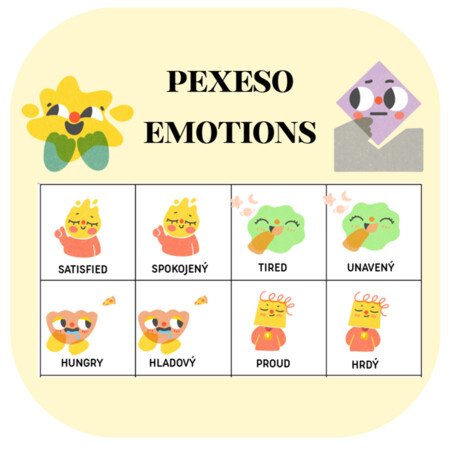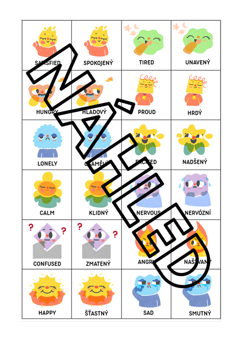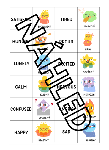 První varianta je určena k tomu, aby děti zábavnou formou zjistily, jak se anglicky řeknou různé emoce – například radost, smutek či překvapení. Druhá varianta slouží k procvičení a upevnění již osvojených slovíček.