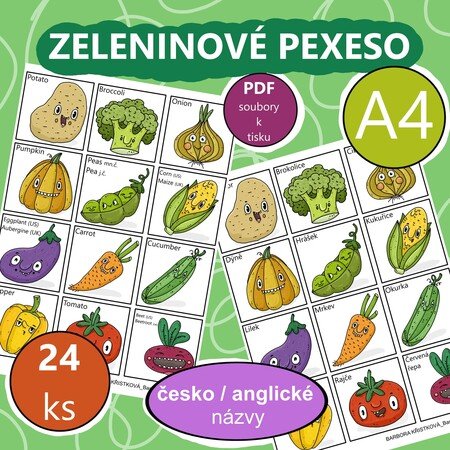 Autorské pexeso – ZELENINA (česky + anglicky)