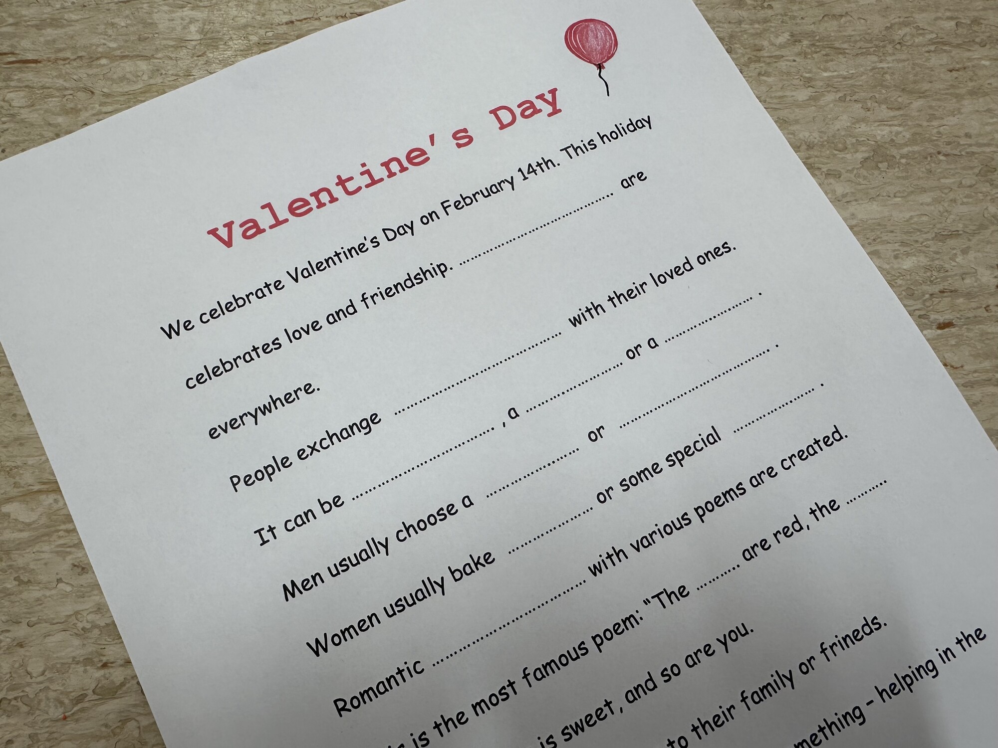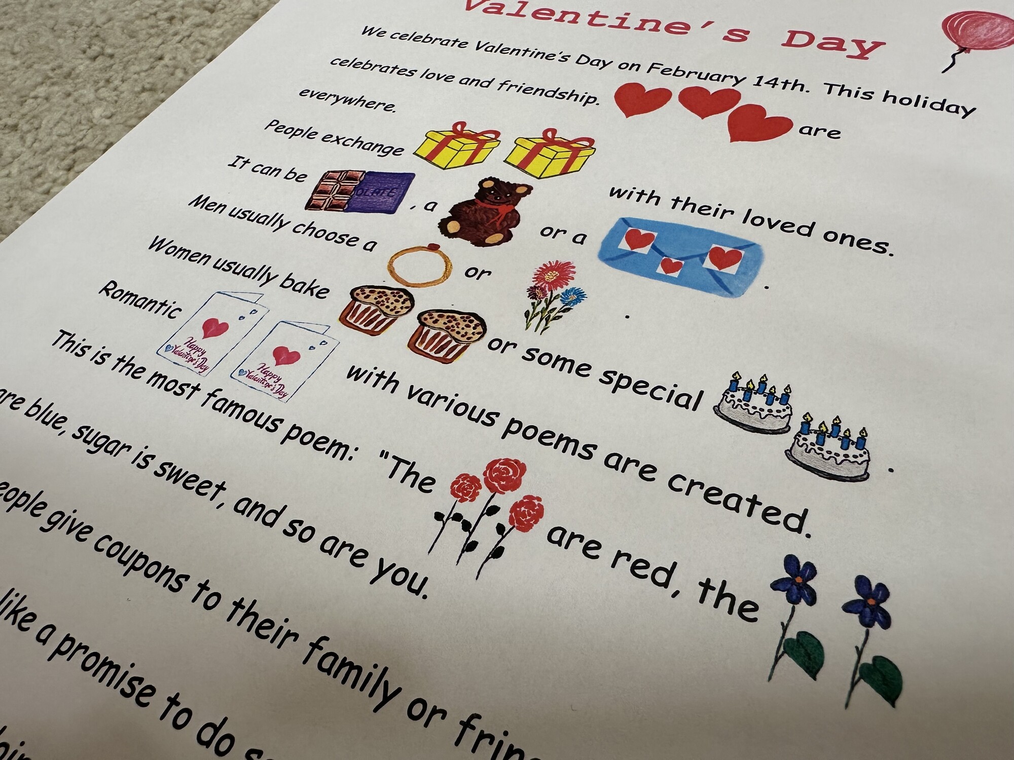 Picture reading - Valentine's Day