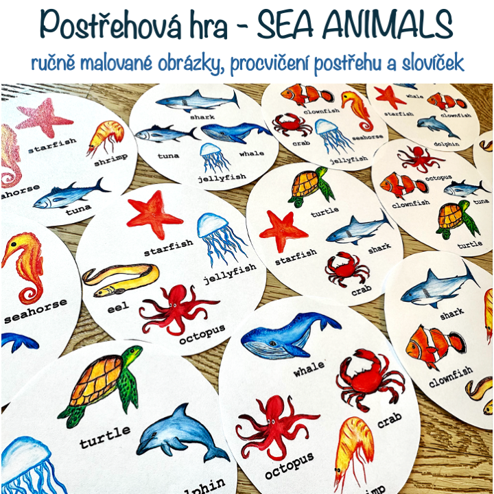 Postřehová hra - SEA ANIMALS - ručně malované