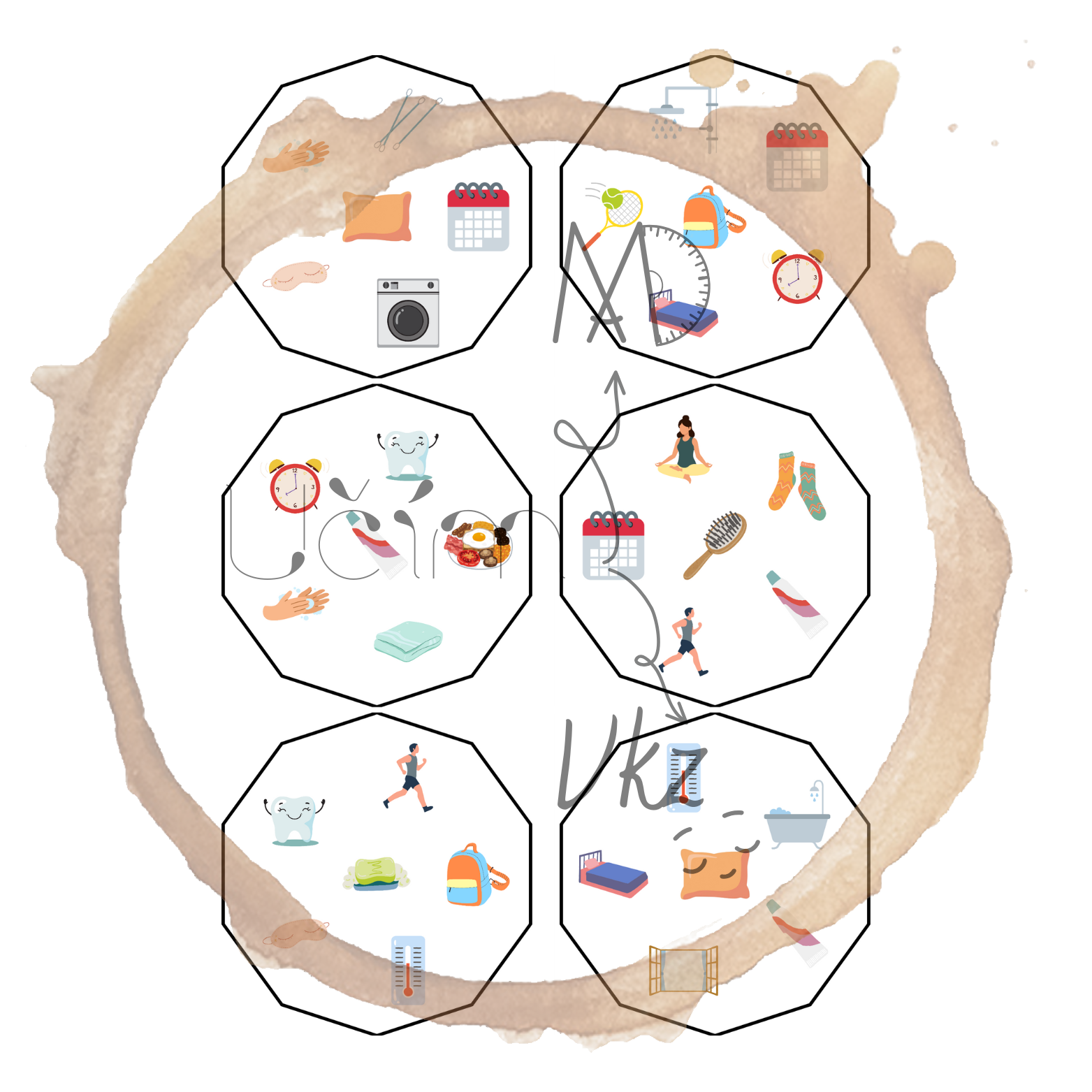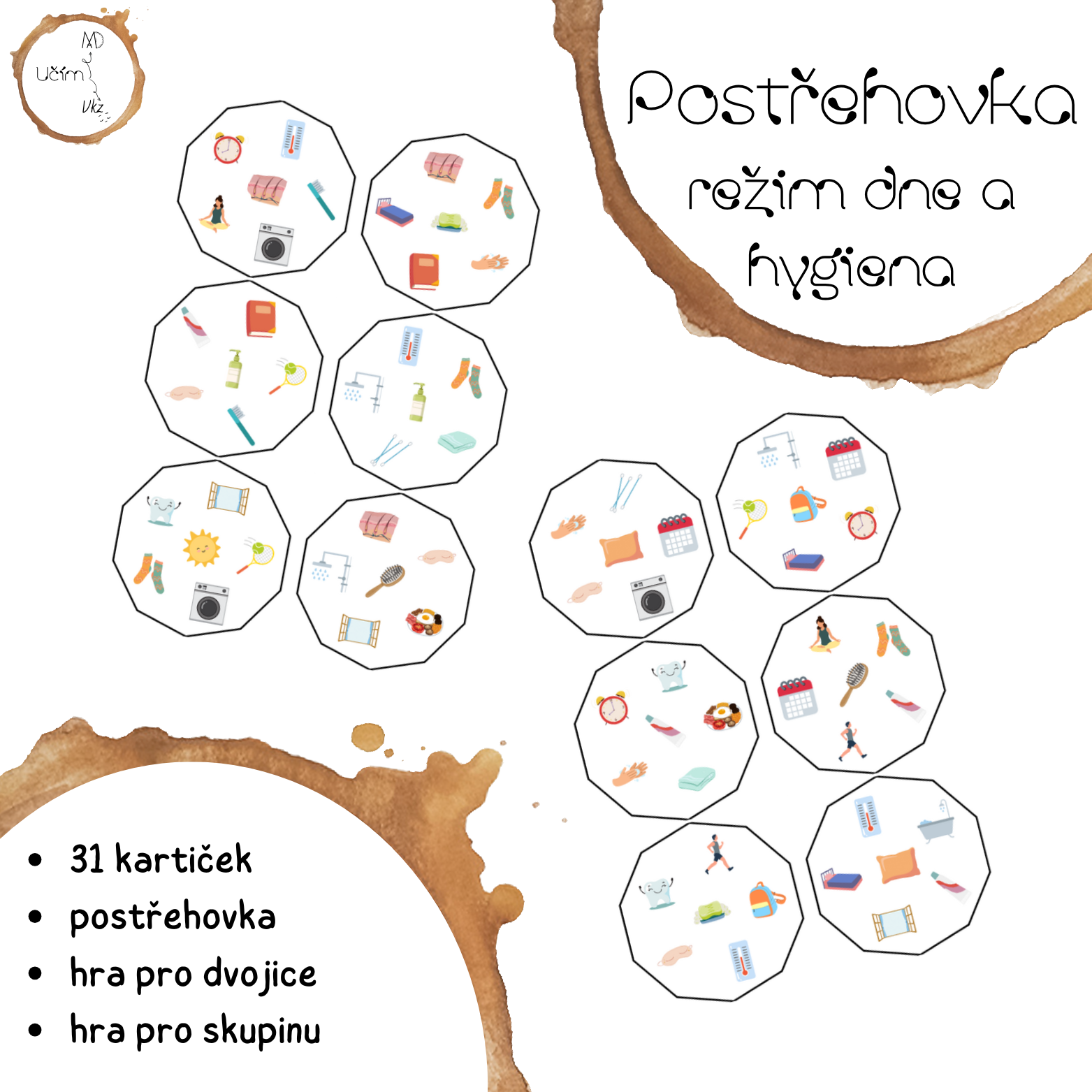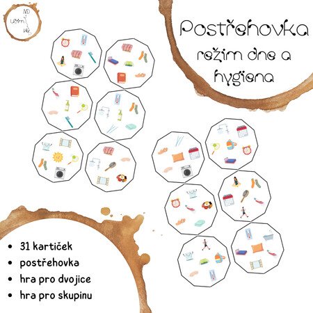 - cílem je rychle najít dvojici karet, které mají společný symbol (např. slunce, budík, postel, polštář, relaxace ...).