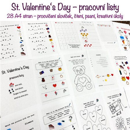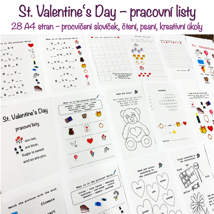 Materiál obsahuje 28 A4 stran (23 A4 stran aktivit + 5 A4 stran řešení). Procvičení slovní zásoby, psaní, čtení. Kreativní úkoly – křížovka, osmisměrka, vybarvování, psaní, kreslení, přesmyčky, rýmy, básnička, plakát, počítání.