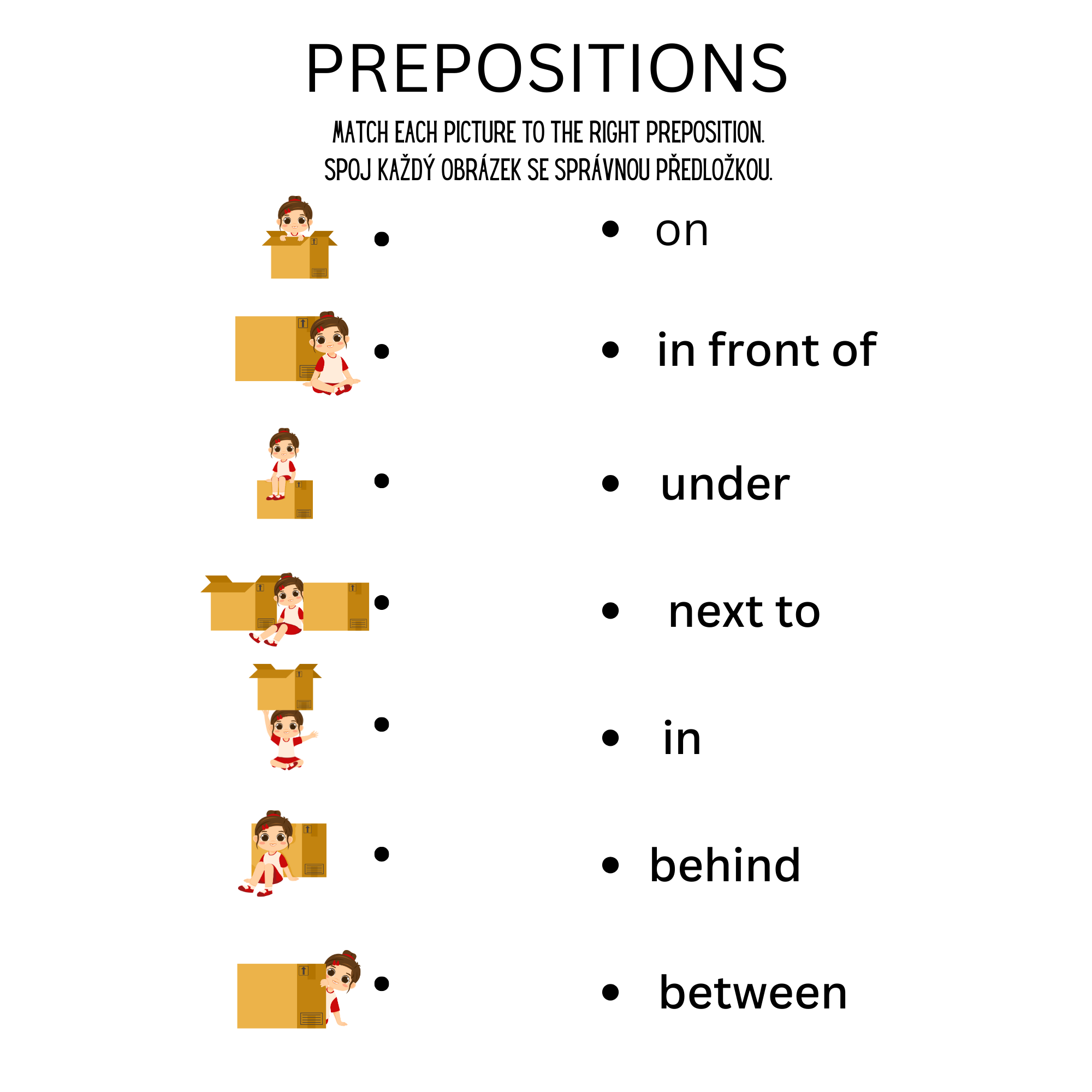 Základem sady jsou graficky poutavé karty, které vizuálně vysvětlují význam každé předložky.