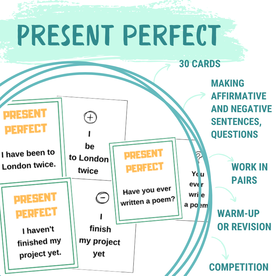 Kartičky, které jsou určené pro procvičování předpřítomného času prostého - kladných vět, záporných vět a otázek. Na jedné straně kartičky je zadání, na druhé řešení.