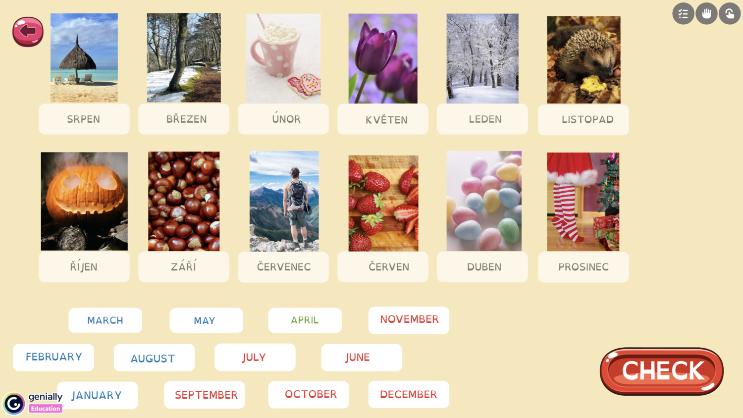 Místnost 2 - Months = žáci spojují názvy měsíců s obrázky (drag and drop)