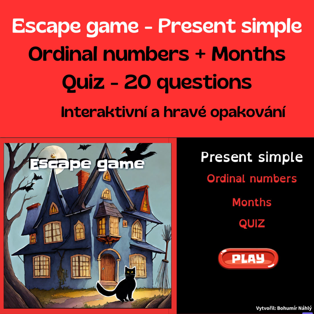 Materiál je zaměřen na učivo Přítomný čas prostý, řadové číslovky, měsíce a na závěr čeká žáky kvíz/test se 20 otázkami na přítomný čas prostý.
