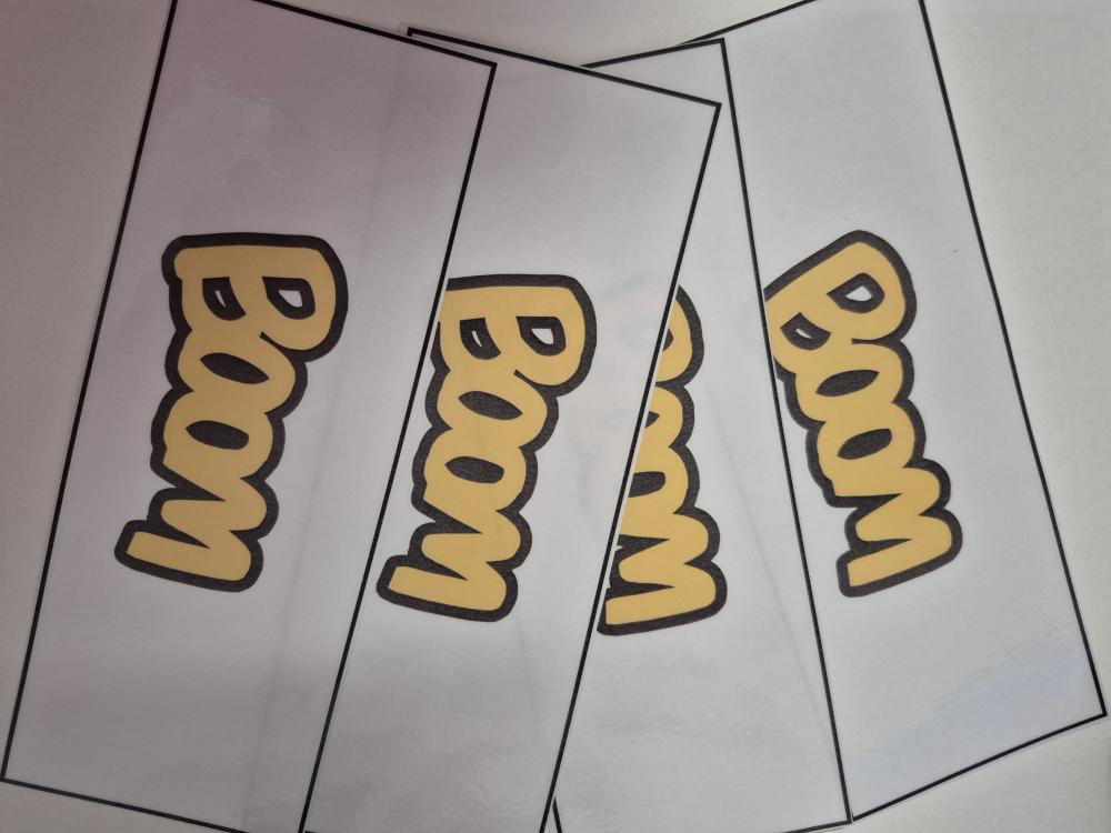 Při hře BOOM žáci postupně tahají karty a tvoří správné věty. Za správnou větu si kartu ponechají, při chybě ji vrací dospodu balíčku. Karta BOOM znamená vrácení všech nasbíraných karet. Vyhrává hráč s největším počtem karet po uplynutí časového limitu.