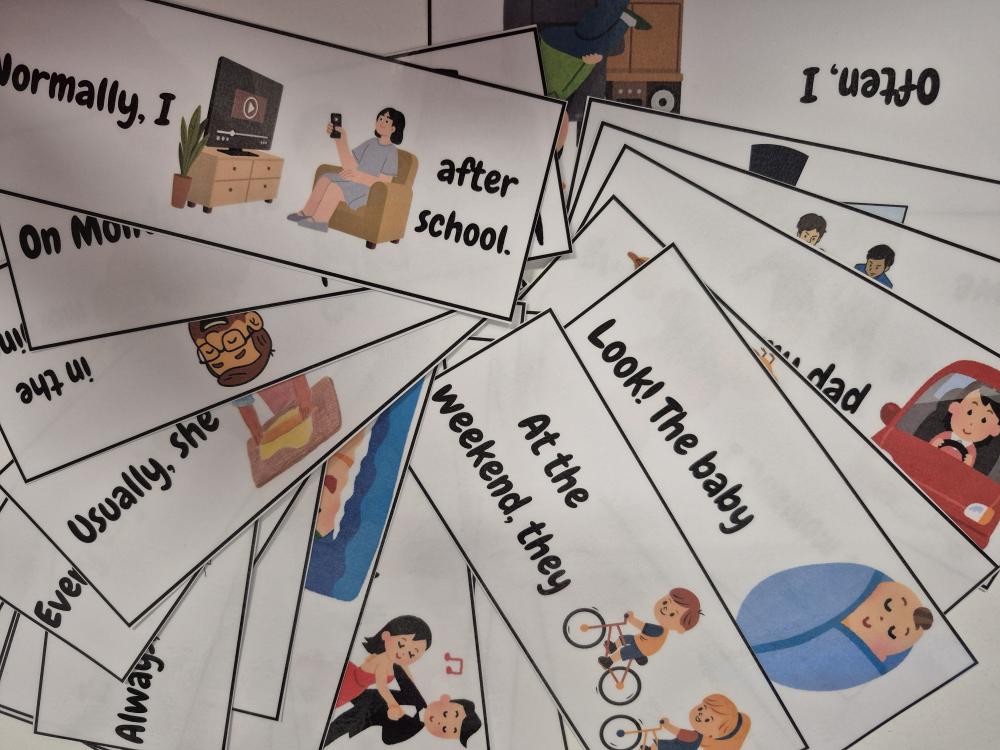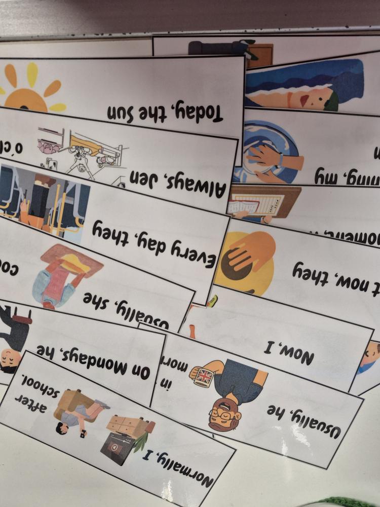 V rámci speaking aktivity mohou žáci obcházet stanoviště s kartami a zapisovat nebo ústně tvořit správné věty.