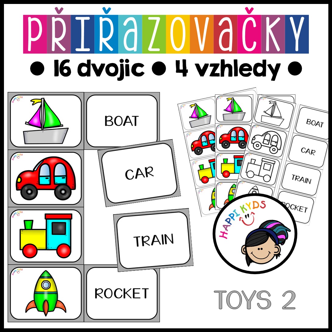 Vedle flashcards jsou přiřazovačky mou nejdéle využívanou a všemi oblíbenou (a přitom velmi jednoduchou a skladnou) pomůckou pro rychlé a efektivní osvojení nové slovní zásoby i procvičení té starší (např. po prázdninách). Je to sázka na jistotu – děti je milují a nejraději by je skládaly pořád! :-D