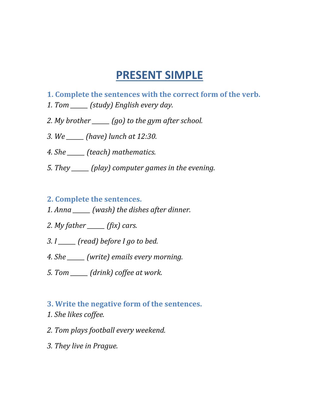- Cvičení na doplnění správného tvaru slovesa