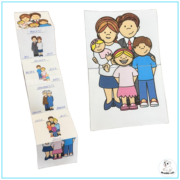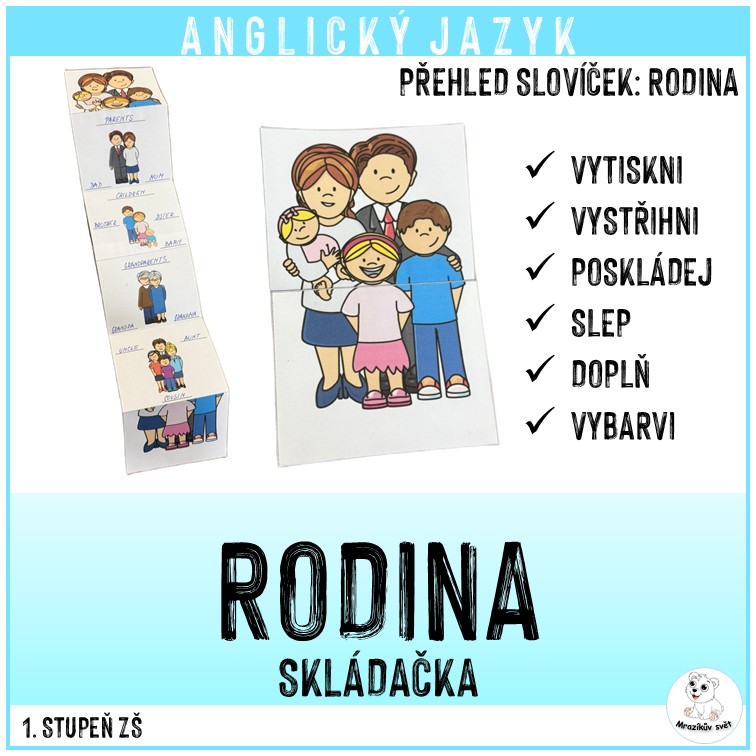 Vytiskněte vámi preferovanou stranu tohoto materiálu. Doplňte anglická slova, případně vybarvěte. Vystřihněte dva sloupce, přeložte do harmoniky a slepte.
