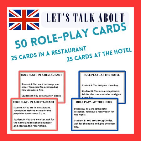 V tomto materiálu najdete 50 ROLE PLAY CARDS - reálné situace, které se mohou stát v restauraci či hotelu.