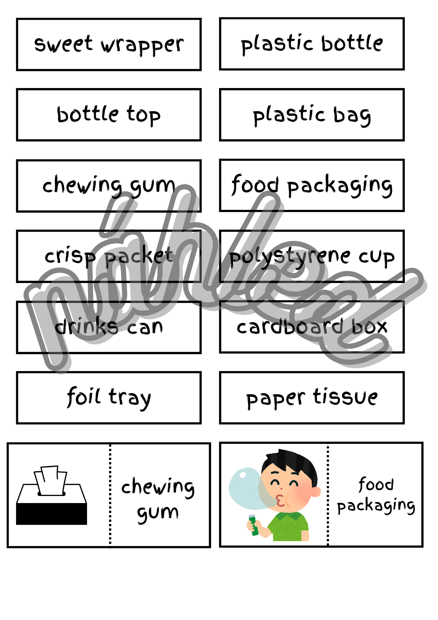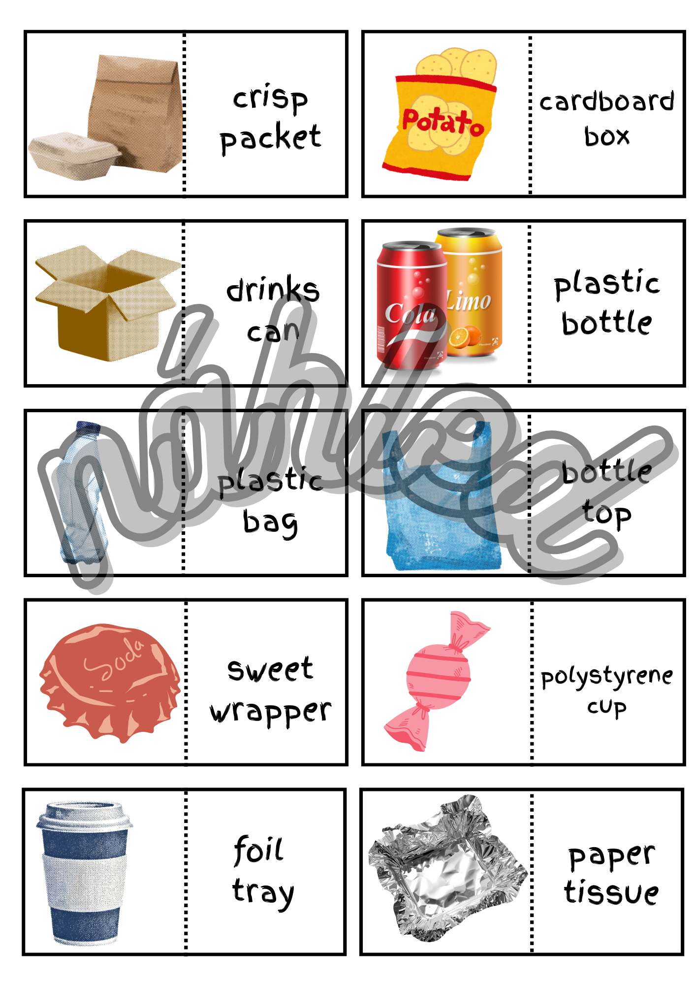 1) domino - Žáci spojují obrázek s názvem odpadu