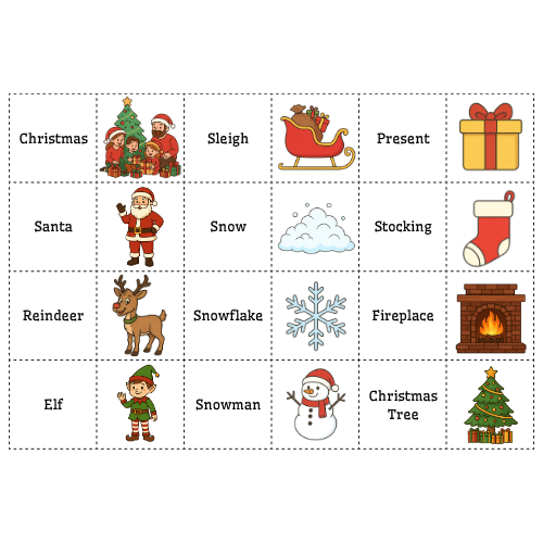 Tento bonusový materiál nabízí vánoční pexeso s anglickou slovní zásobou. Kartičky s obrázky a slovy žákům pomáhají přirozeně rozšiřovat slovní zásobu, trénovat výslovnost a hrát si s jazykem formou, která je vhodná pro všechny věkové kategorie.