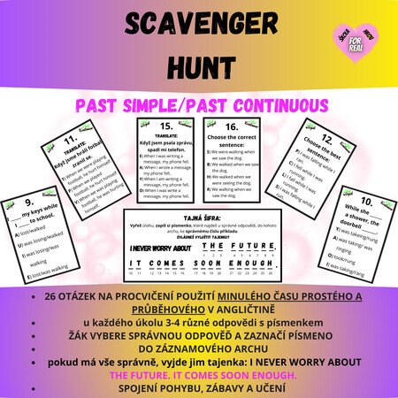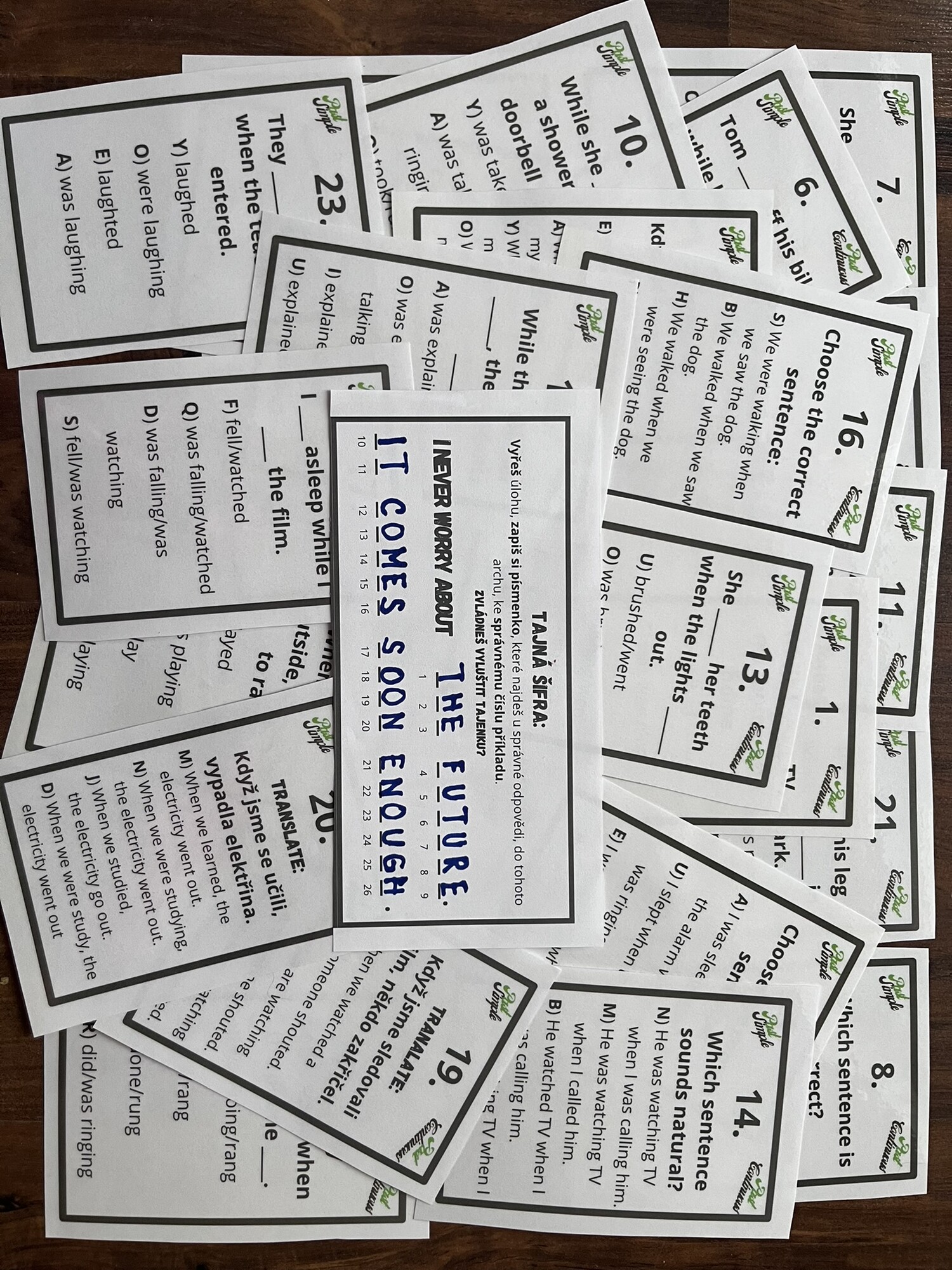 Materiál je potřeba vytisknout, otázky doporučuji zalaminovat, ale není to nutné. Poté je potřeba úkoly rozstříhat a rozložit na různá místa po třídě.