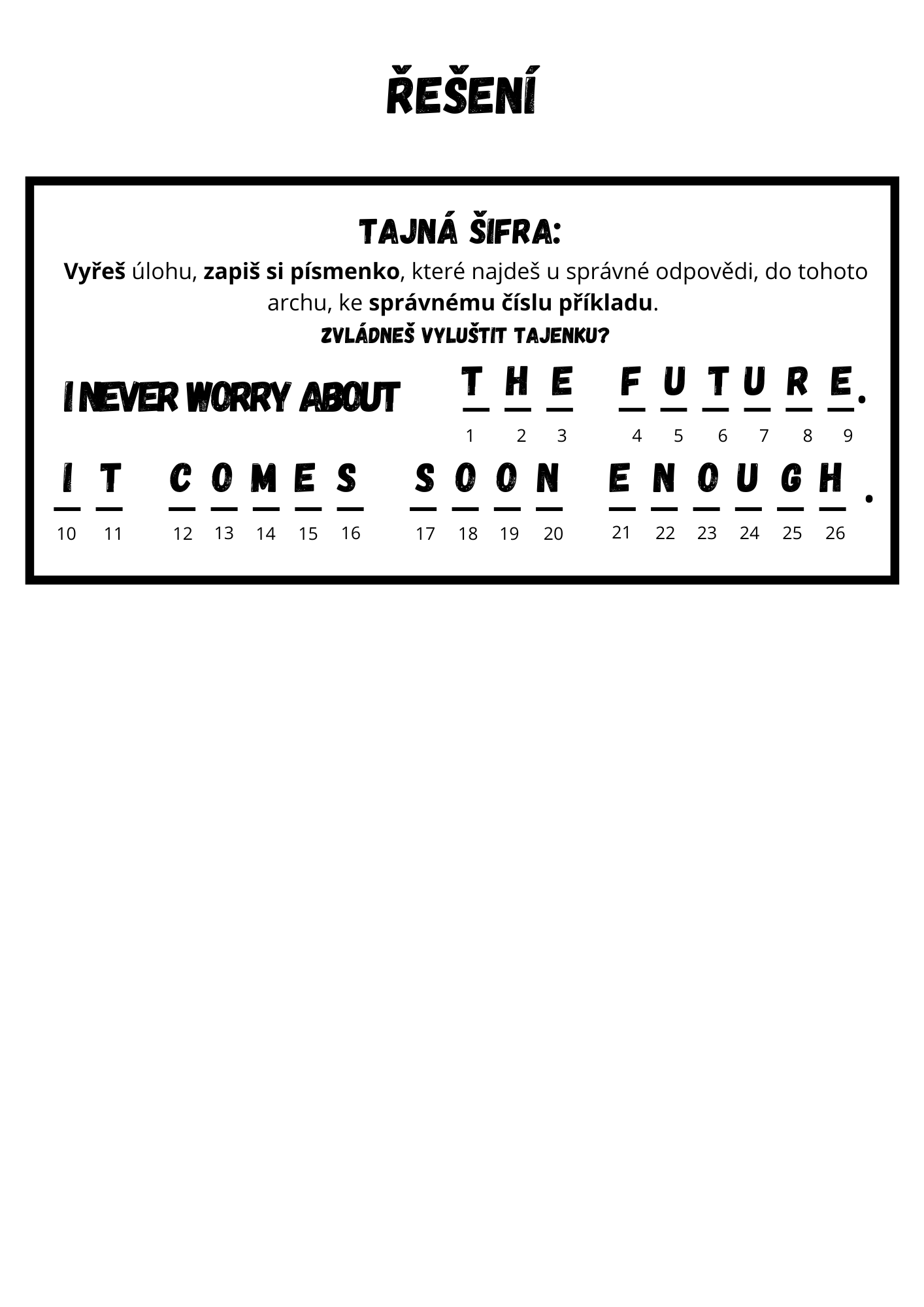 Výsledná šifra: I never worry about THE FUTURE. IT COMES SOON ENOUGH.