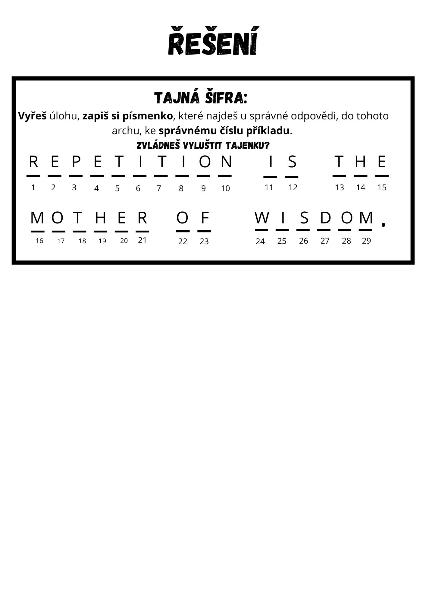 Žáci chodí se záznamovým archem, řeší úkoly na kartičkách a zapisují písmenko, které odpovídá správné odpovědi, do záznamového archu k číslu příkladu.