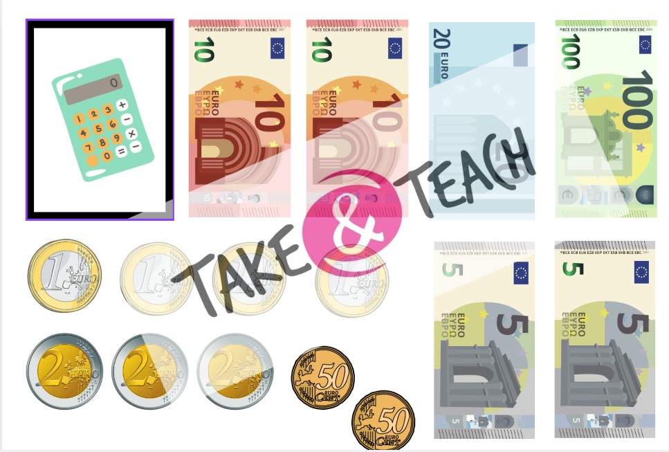 - Podklady pro nákup školních předmětů do nákupního koše + virtuální peníze, skener, a ceny předmětů