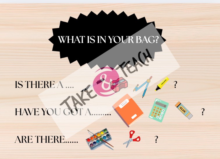 - Podklady - návodné slidy pro popis, co mají žáci v batohu? What is in your bag?