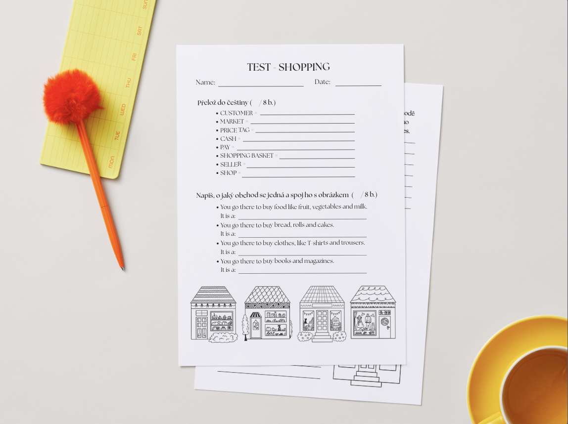 Hravý výukový materiál na téma nakupování, který děti baví a učitelům šetří čas. Díky autorským ilustracím, hrám a tvořivým úkolům si žáci přirozeně osvojí základní slovní zásobu v angličtině.