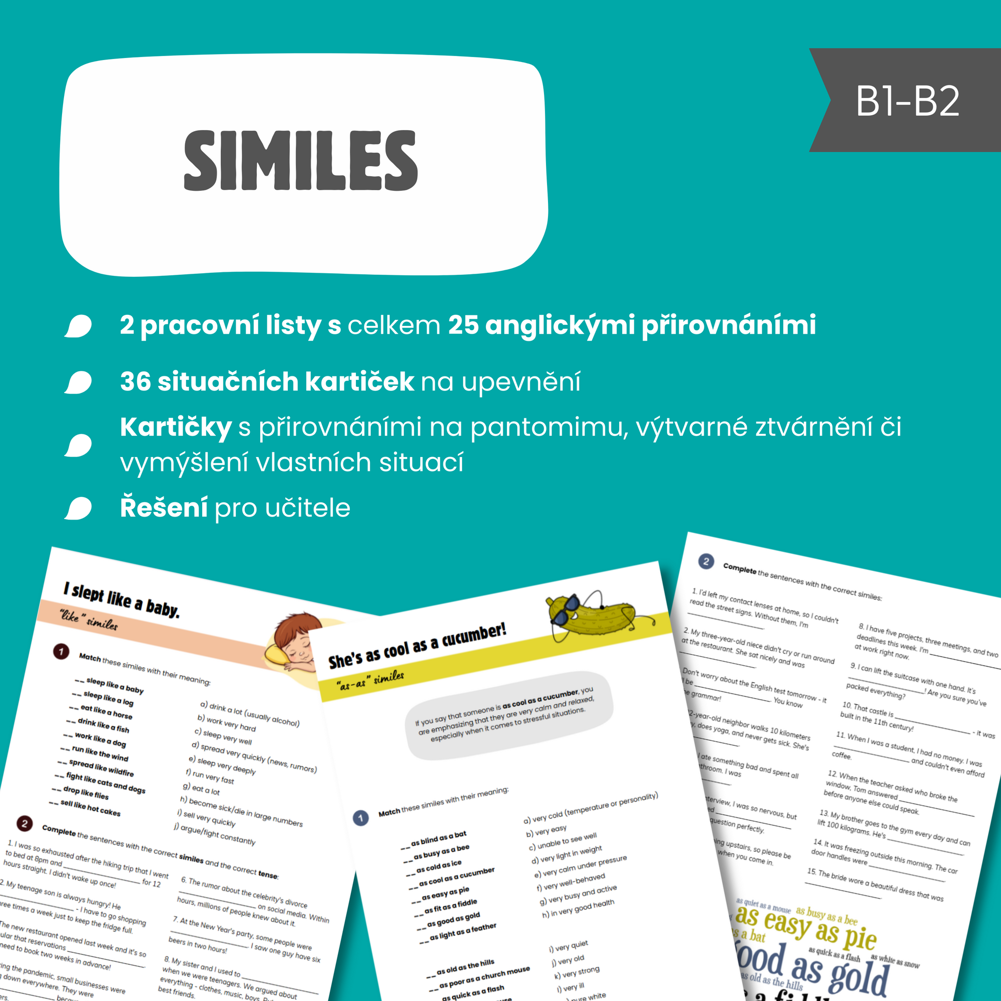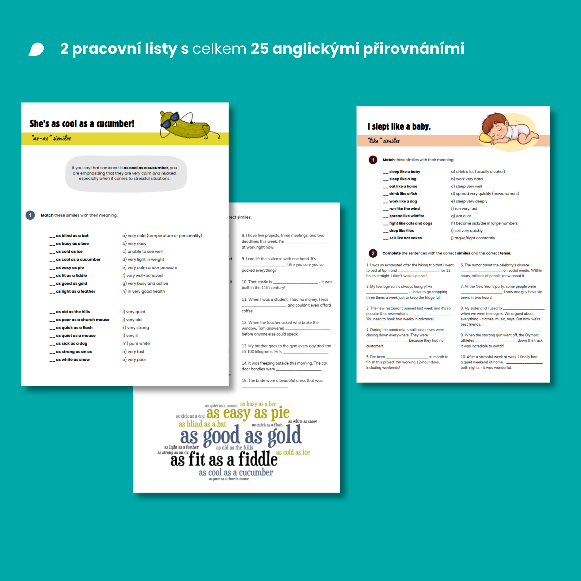- 2 pracovní listy s celkem 25 anglickými přirovnáními