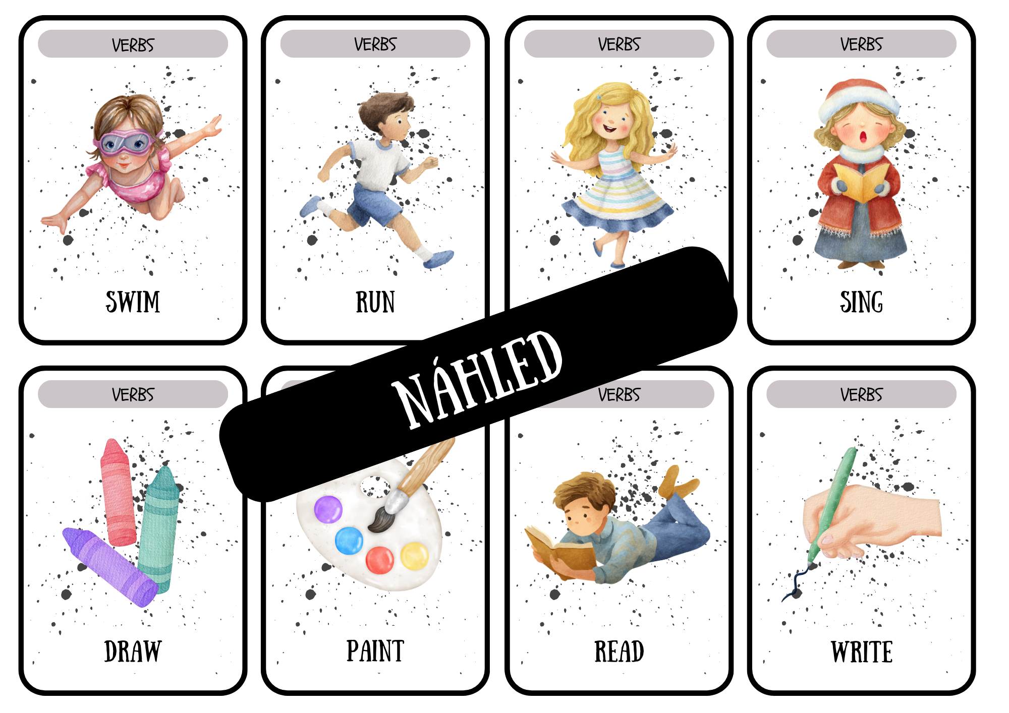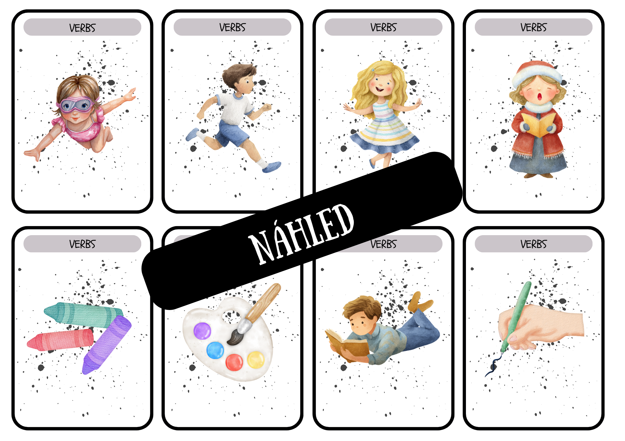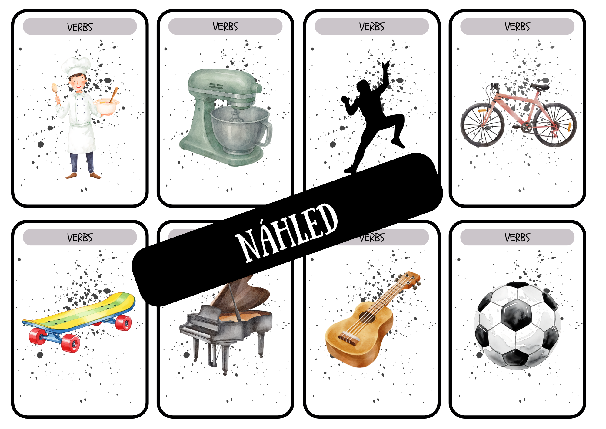Kartičky lze využít i v online podobě. Stačí soubor jen promítnout a přiblížit na dané sloveso.