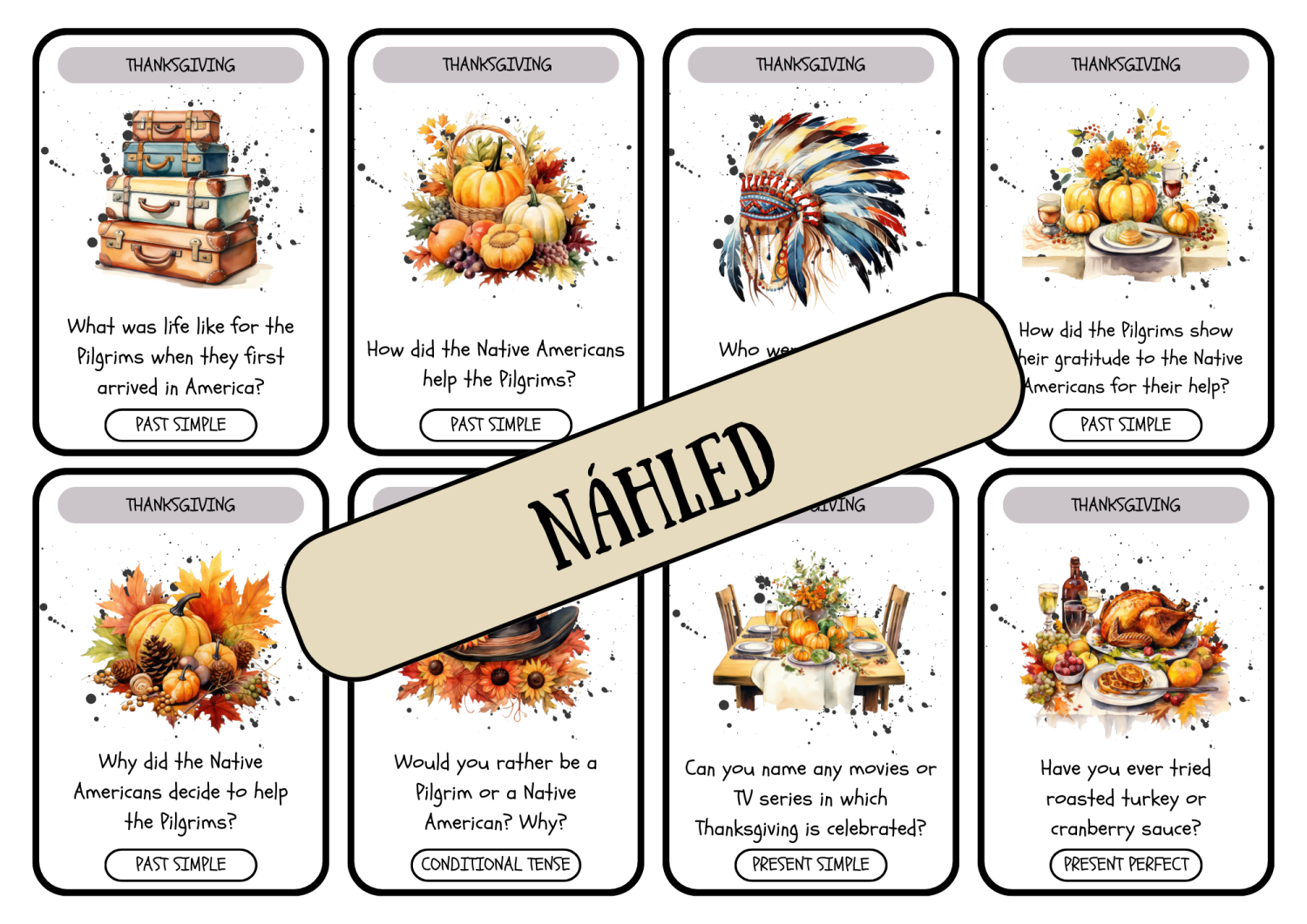 Konverzační kartičky slouží jako ověření znalostí, ideálně zařadit na konec hodiny / opakování v další vyučovací hodině.