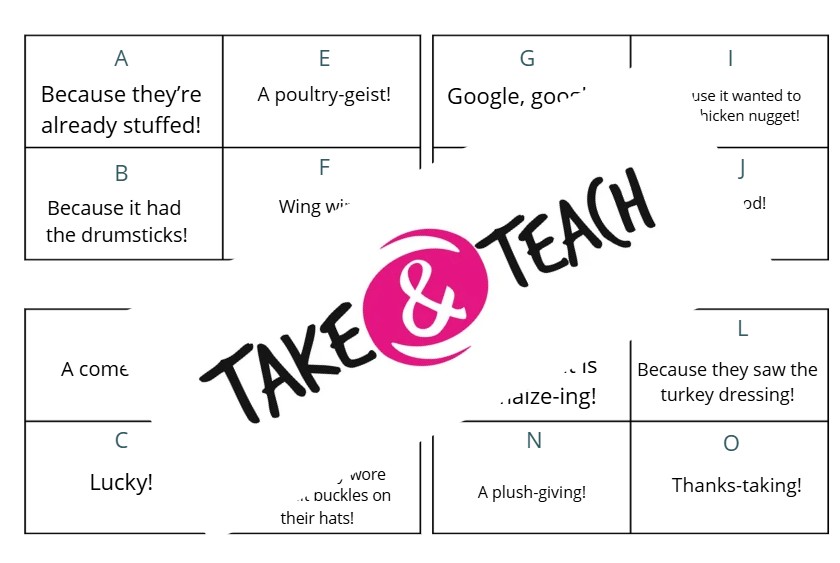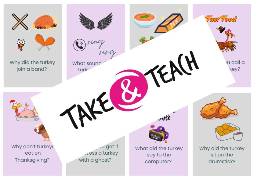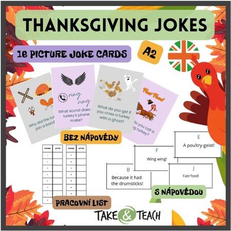 Pobavte se s žáky nad 16 vtipy na DÍKŮVZDÁNÍ - THANKSGIVING. Nechte je dokončit vtipy podle obrázkové nápovědy, nebo jejich vlastního důvtipu.