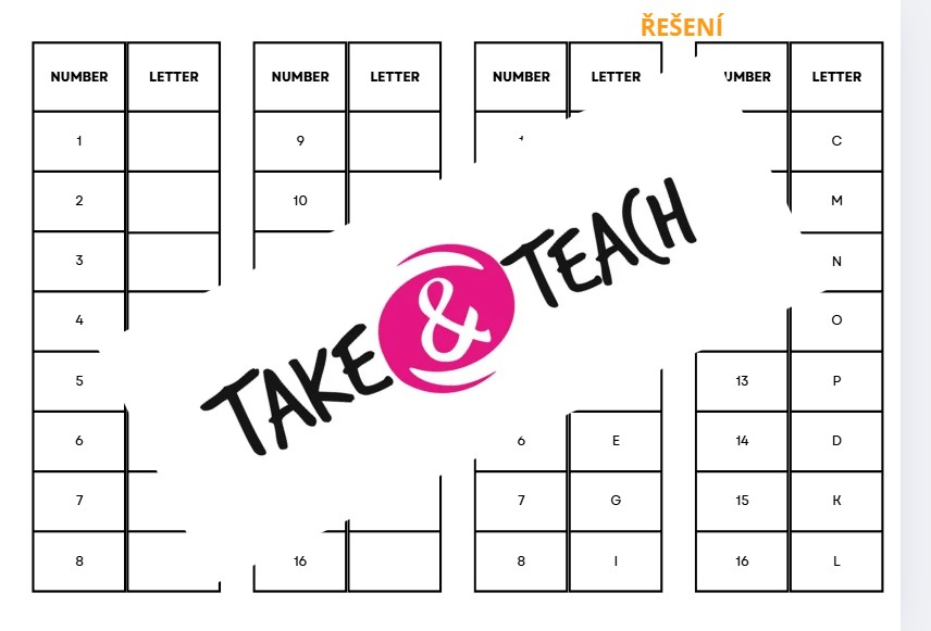 1 pracovní list na zaznamenání odpovědí - dvojic - pro běhací aktivitu v terénu/třídě