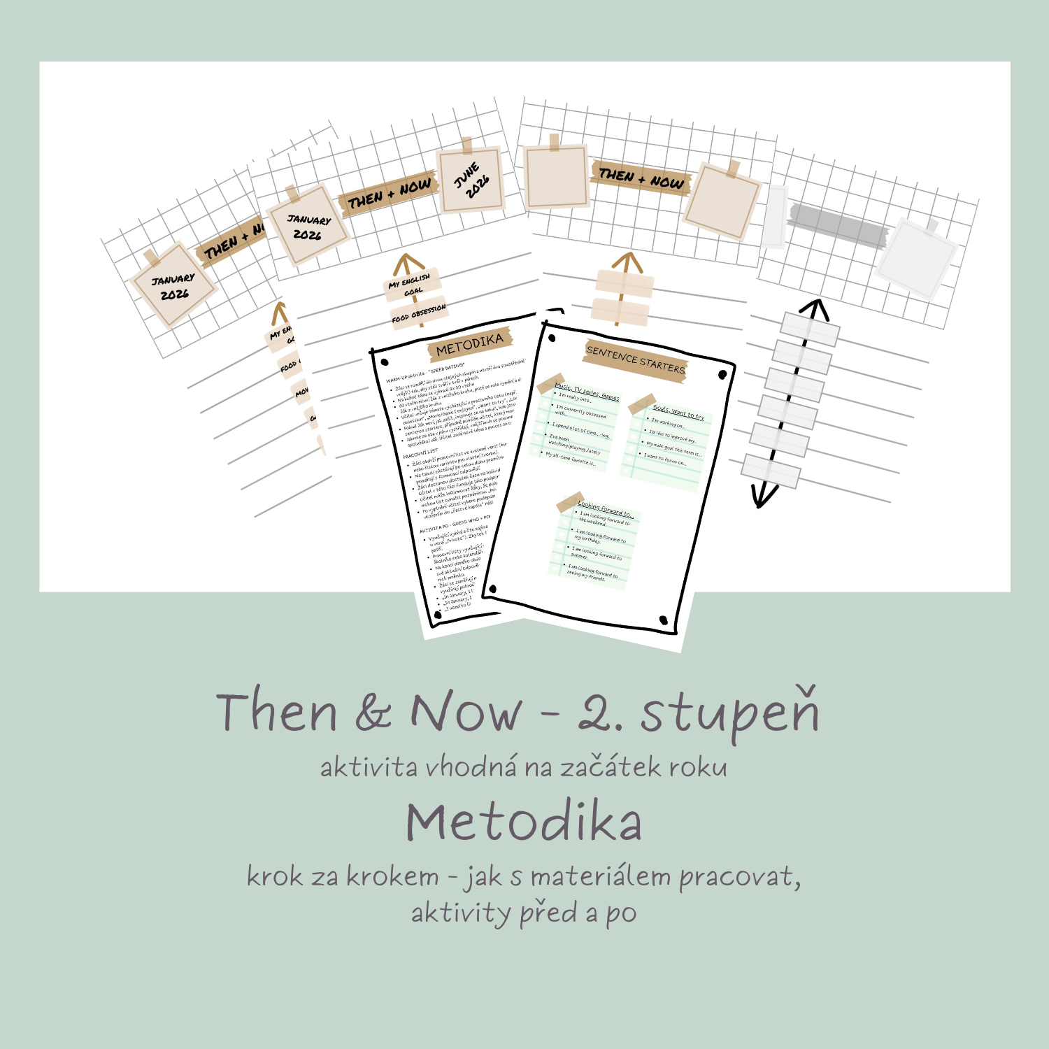 Tato aktivita na téma Then vs. Now nabízí hravý a motivující způsob, jak s žáky zahájit nové období a reflektovat jejich zájmy i pokroky v angličtině. Inspiraci jsem našla ve svém diáři, kde si podobnou úvodní stránku tvořím každý rok.