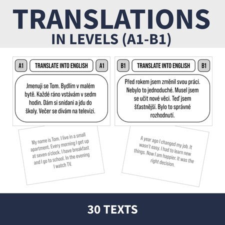 Sada: 30 karet (3 x 10 / A1, A2, B1) vč. řešení