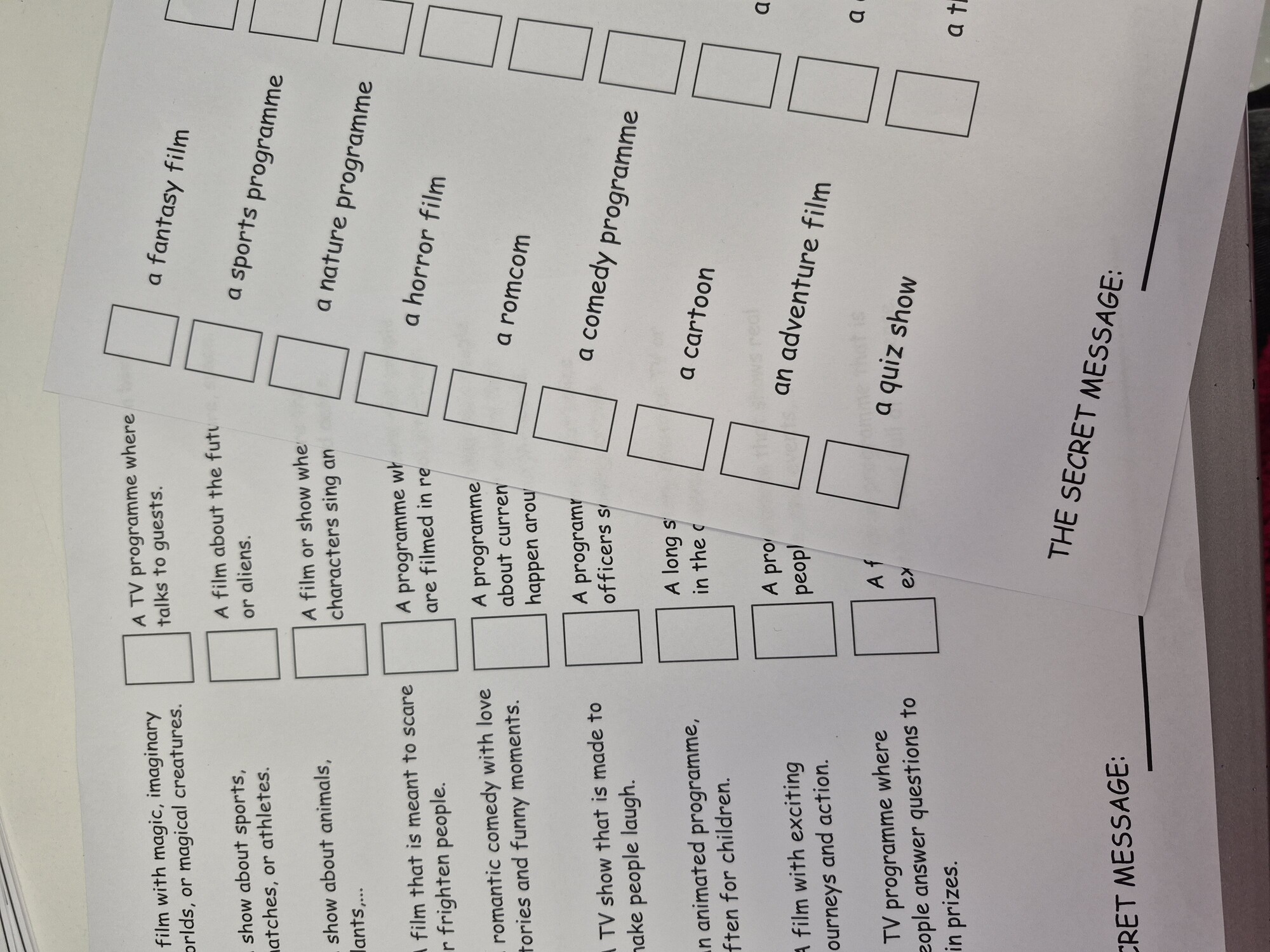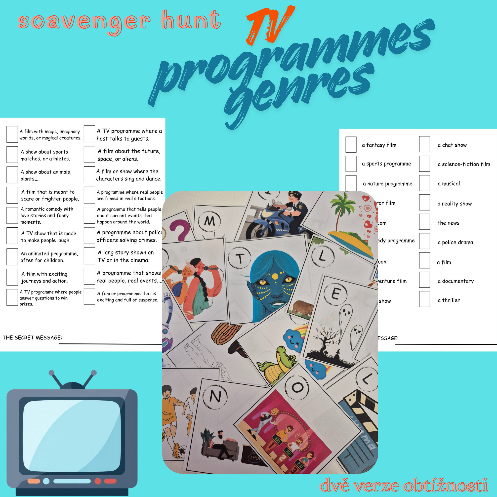Po správném doplnění všech písmen žákům vyjde tajenka: Television and films.