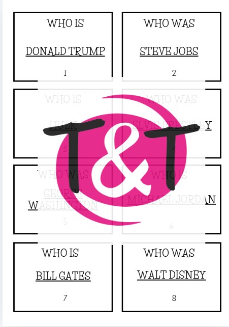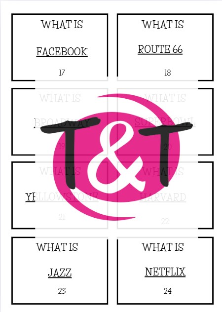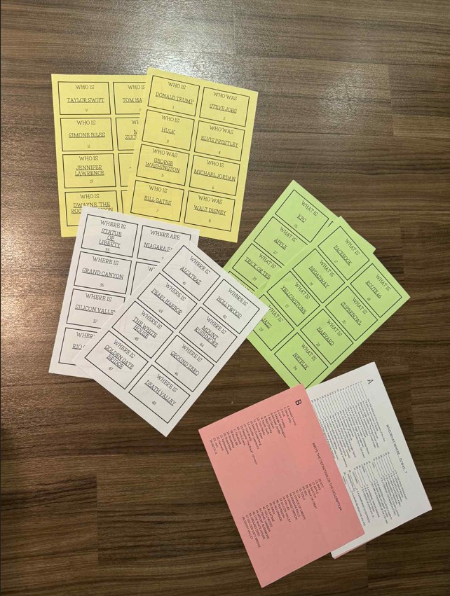 - 16 kartiček se známými věcmi, společnostmi, zajímavostmi