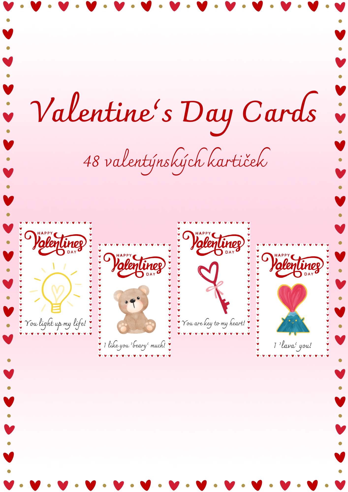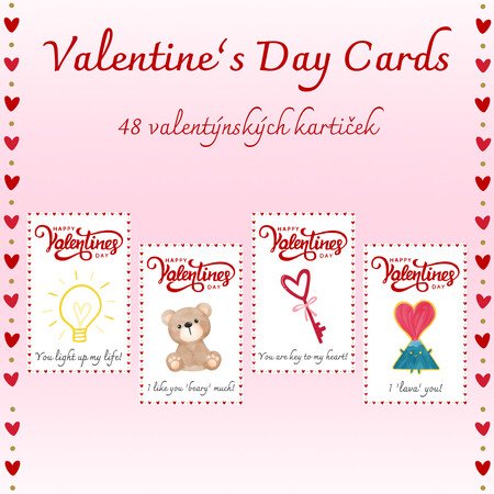 💌48 valentýnských kartiček v anglickém jazyce💌