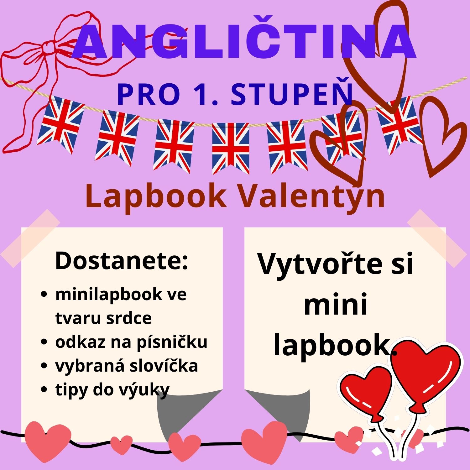 Lapbook je jednoduchá pomůcka do výuky, kterou si tvoří sami žáci. Pomůže jim vizualizovat základní slovní zásobu k tématu Valentýn, díky níž si ji lépe zapamatují. Lapbook je vytvořený pro video z YouTube, které ale není podmínkou.