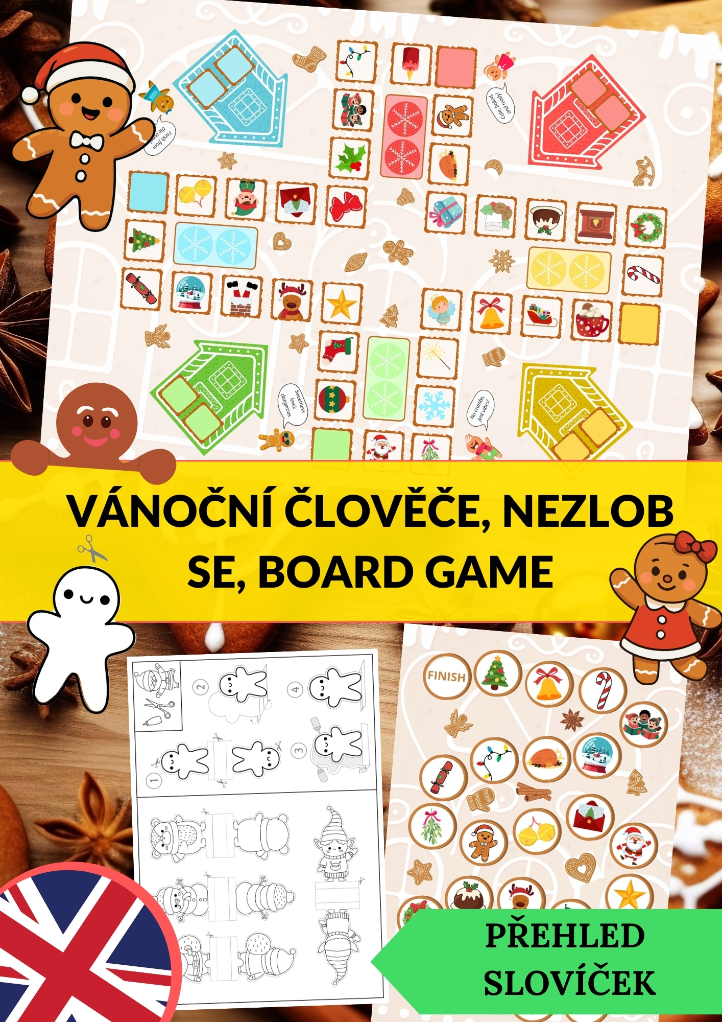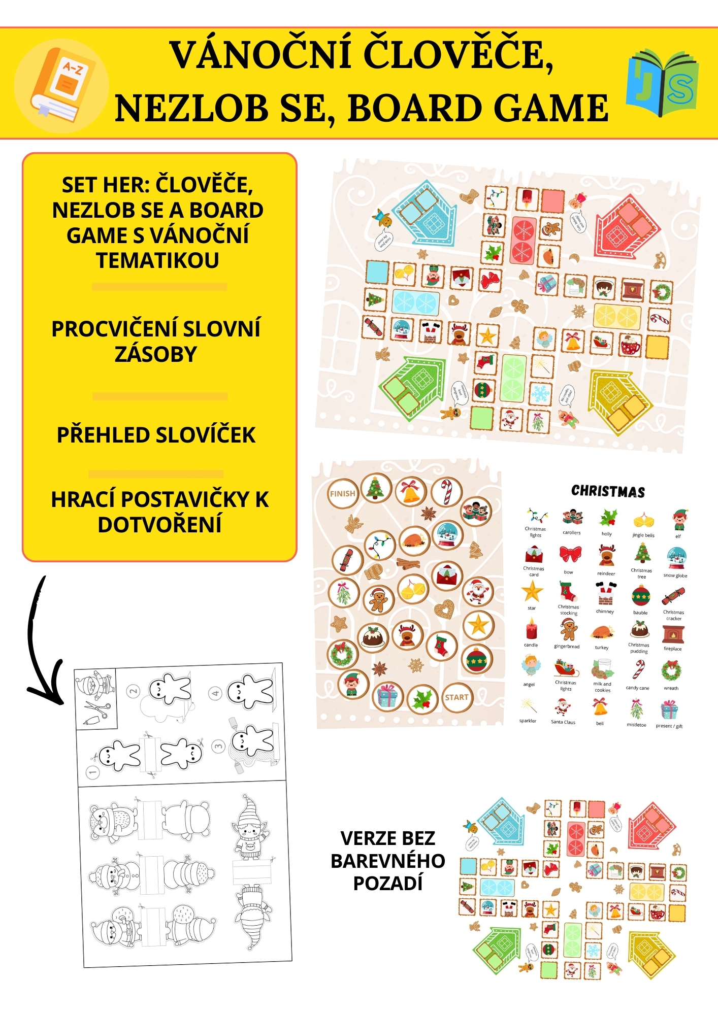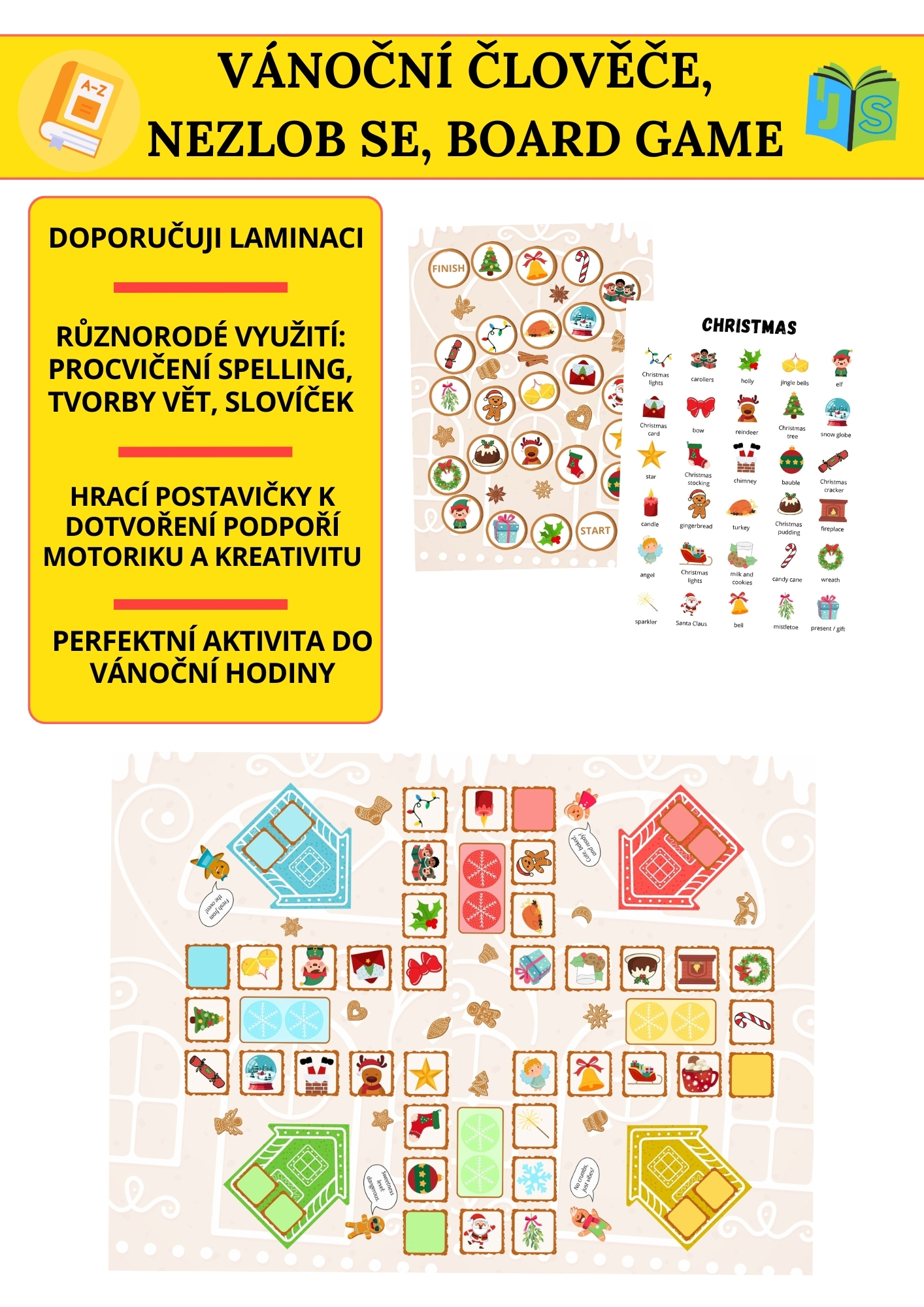 Oživte vánoční hodiny angličtiny zábavnou verzí hry Člověče, nezlob se! Tento materiál spojuje oblíbenou dětskou hru s procvičováním slovní zásoby na téma Vánoce. Žáci při pohybu po herním plánu pojmenovávají obrázky, trénují spelling nebo vytvářejí jednoduché věty. Aktivita podporuje spontánní mluvení, komunikaci i spolupráci.