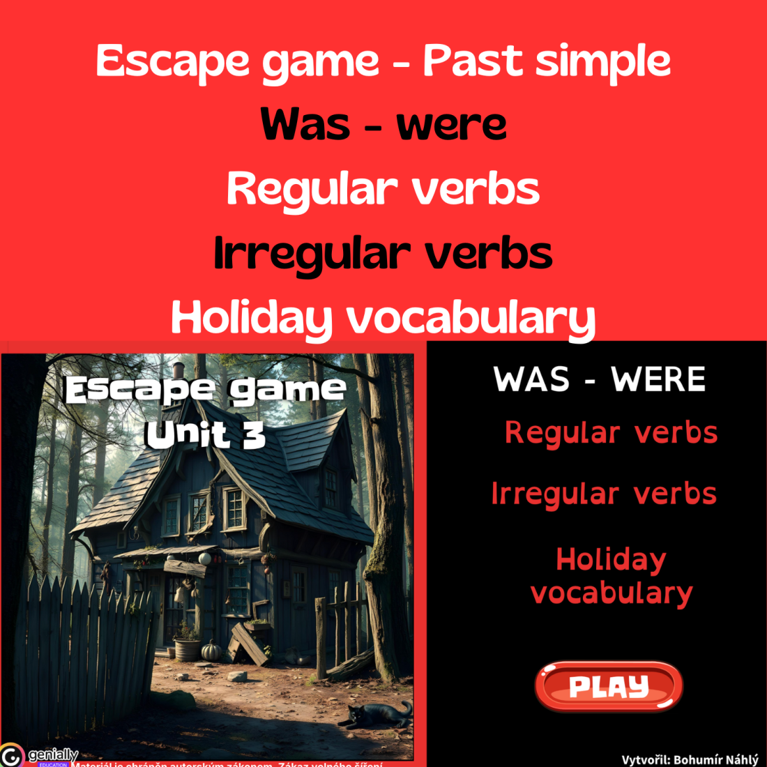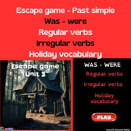 Rád bych vám představil tuto interaktivní únikovou hru. Obsahově jde o opakování Unit 3 z učebnice Project 2, ale hra se dá použít v jakémkoliv ročníku, kde potřebujete procvičit danou gramatiku. Doporučuji podívat se na zrychlenou video ukázku!