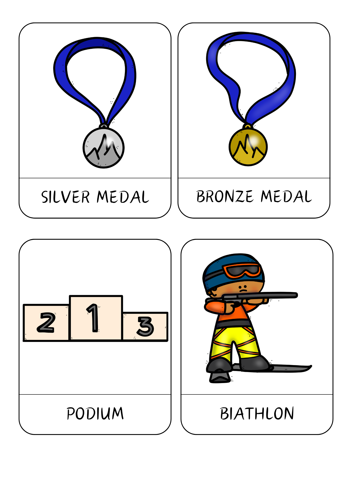 - 19 třísložkových kartiček s obrázky a anglickými názvy zimních sportů a pojmů s nimi souvisejících