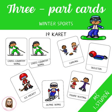 Soubor je zaměřen na rozšiřování slovní zásoby v anglickém jazyce prostřednictvím třísložkových karet s tematikou zimních sportů. Materiál je vhodný pro MŠ i 1. stupeň ZŠ a umožňuje práci jak s jednotlivci, tak se skupinou dětí.