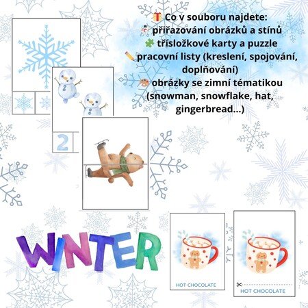 🎨 obrázky se zimní tématikou (snowman, snowflake, hat, gingerbread...)