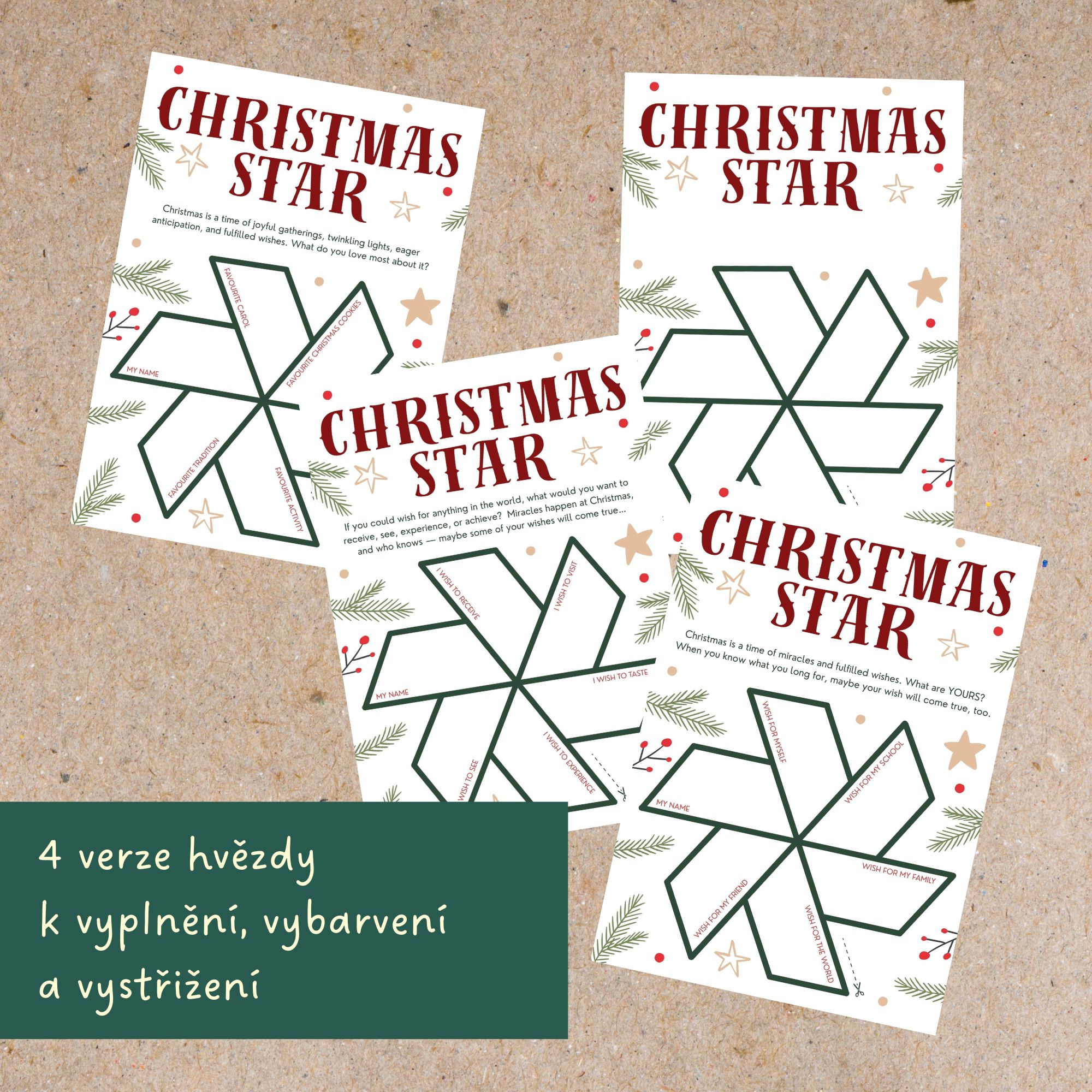 🌟Každý žák vyplní nebo vybarví hvězdu podle sebe a poté ji vystřihne. Hvězdy do sebe zapadnou a vytvoří dohromady krásný ornament, který ozdobí vánoční nástěnku ve třídě.
