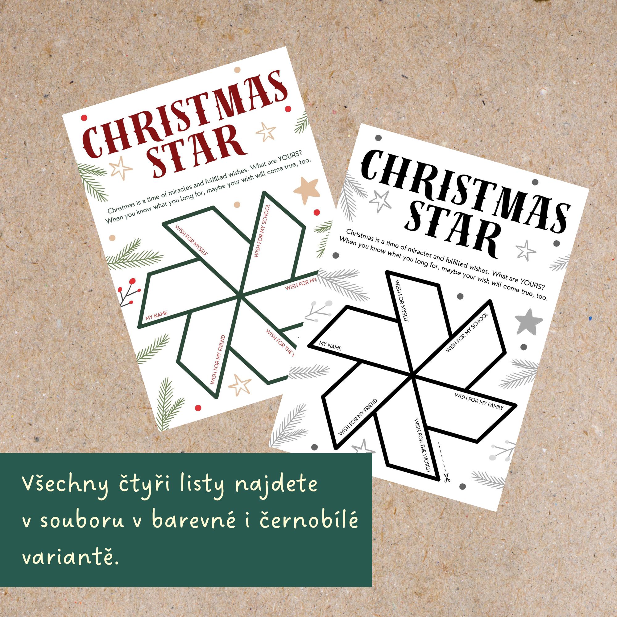 🌟Vánoce jsou doba zázraků a splněných přání. Jaká jsou ta TVOJE? Aktivita je určená pro zpestření předvánočních hodin angličtiny a děti při ní mohou anglicky zformulovat přání pro sebe i své blízké nebo se zamyslet nad tím, co je na Vánocích ze všeho nejhezčí. Hvězdy poskládané dohromady ozdobí vaši třídní vánoční nástěnku.