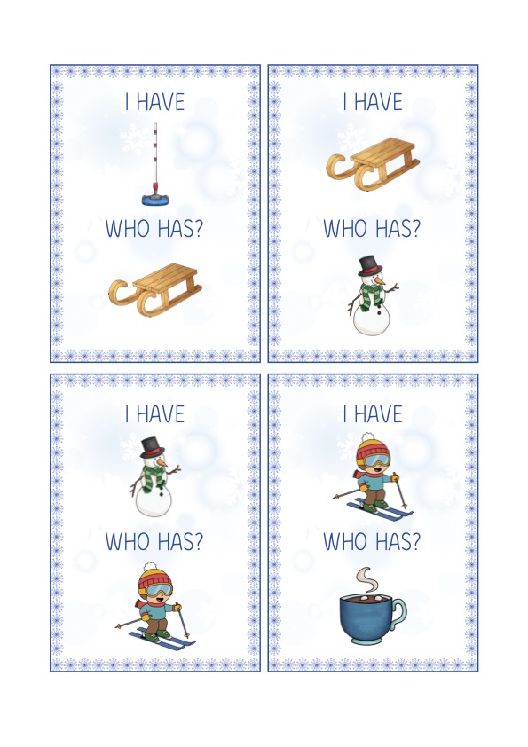 - 28 kartiček s obrázky zimních předmětů a aktivit
