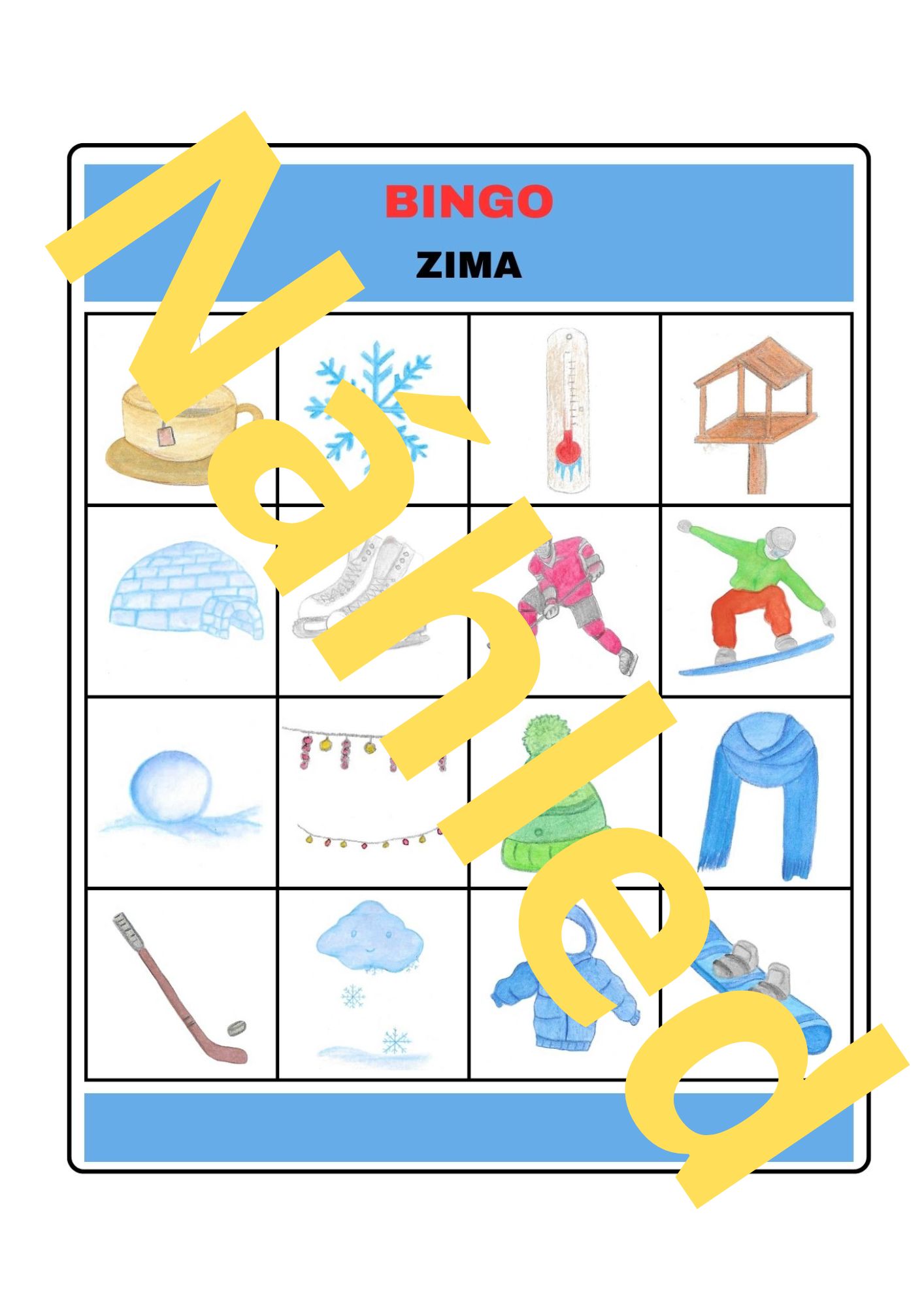 Bingo má 20 hracích karet a sadu obrázků k losování.