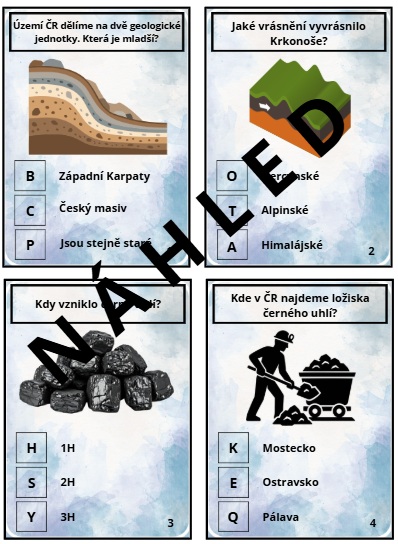 Žáci si prostřednictvím kvízu opakují a upevňují znalosti o geologické stavbě České republiky – hlavní geologické jednotky, horniny a procesy, které utvářely území ČR.