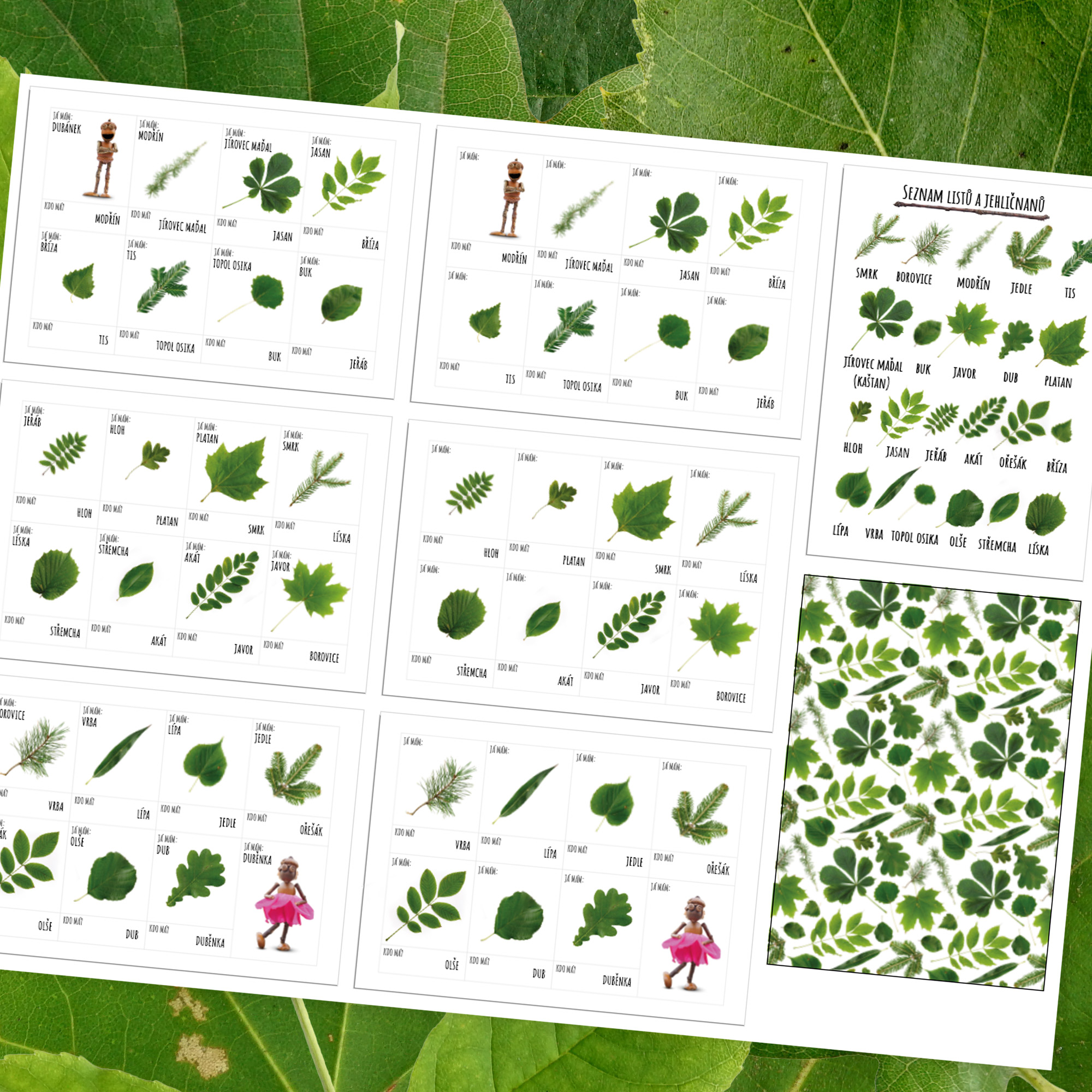 - Přehledový plakát se všemi použitými stromy, který mohou děti využít jako nápovědu při hře nebo jako pomůcku venku při určování stromů v přírodě.