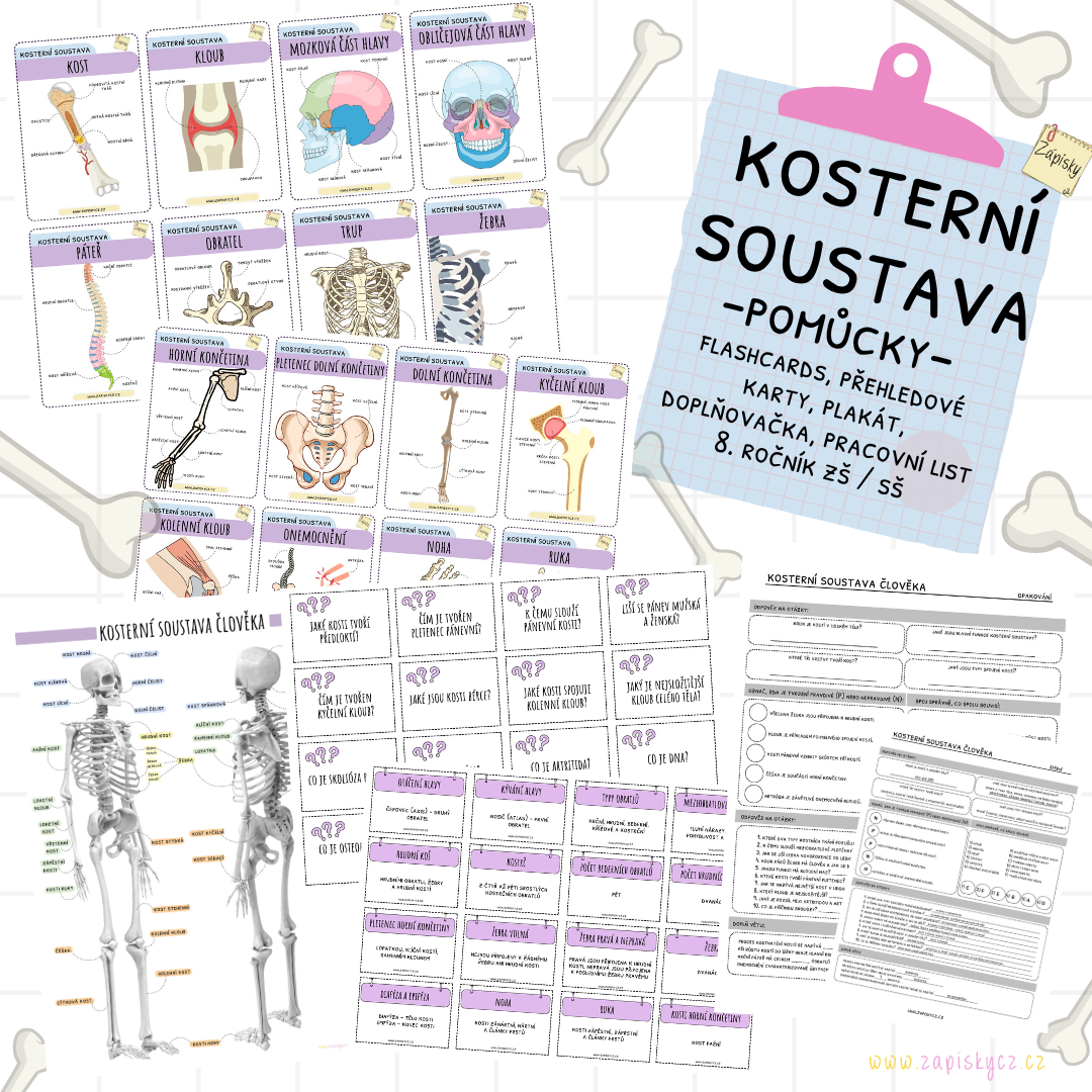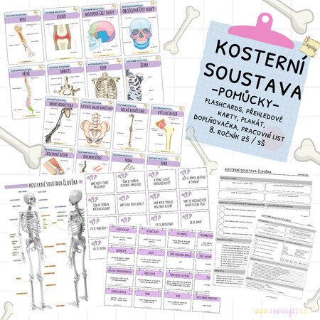 Jedná se o doplňkový materiál k výuce kosterní soustavy v 8. ročníku ZŠ nebo odpovídajícím ročníku víceletého gymnázia. Balíček obsahuje: