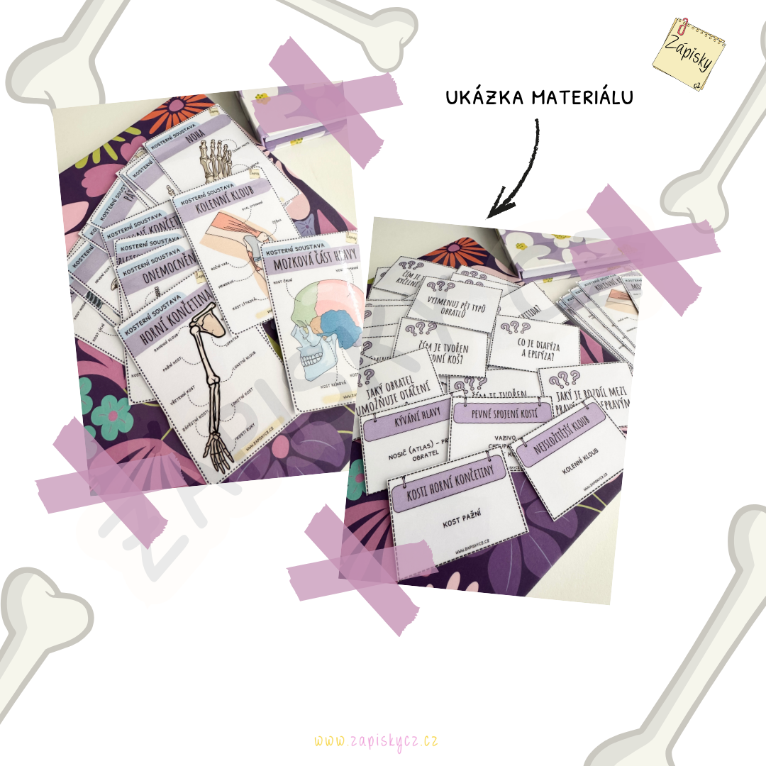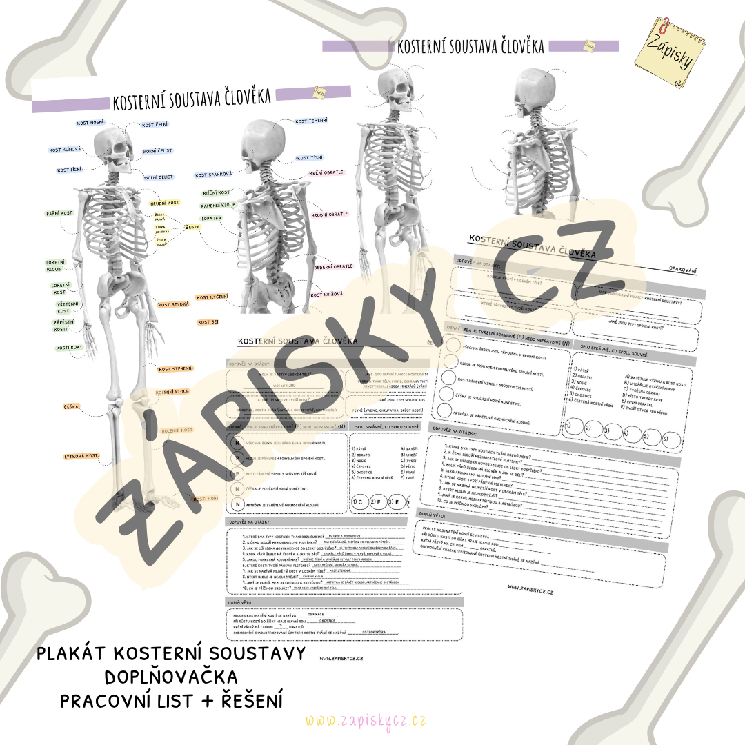 Doplňovačku: 1 strana A4 (slouží k procvičování a upevnění znalostí z kosterní soustavy)