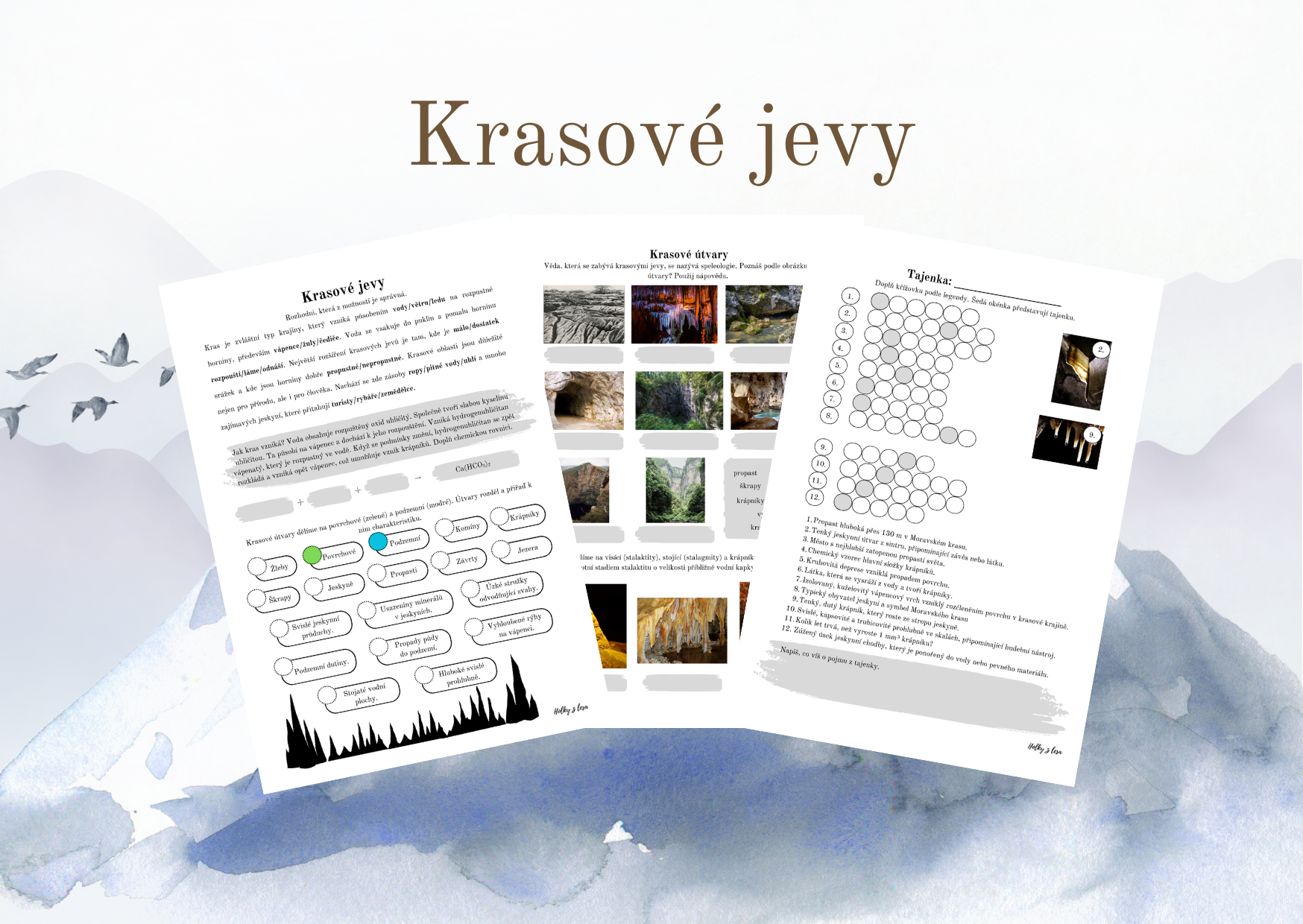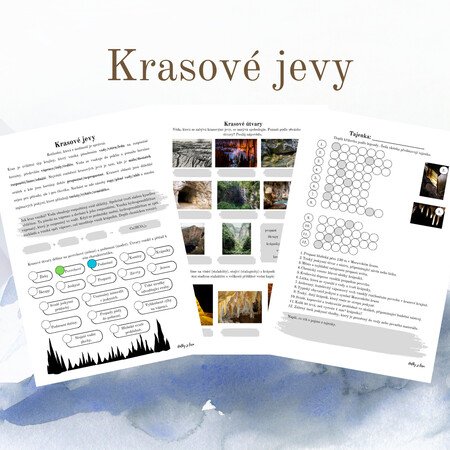 Žák rozlišuje povrchové a podzemní krasové útvary a umí je pojmenovat: žleby, závrty, škrapy, krasové kužely, propasti, jezera, komíny, jeskyně, krápníky.
